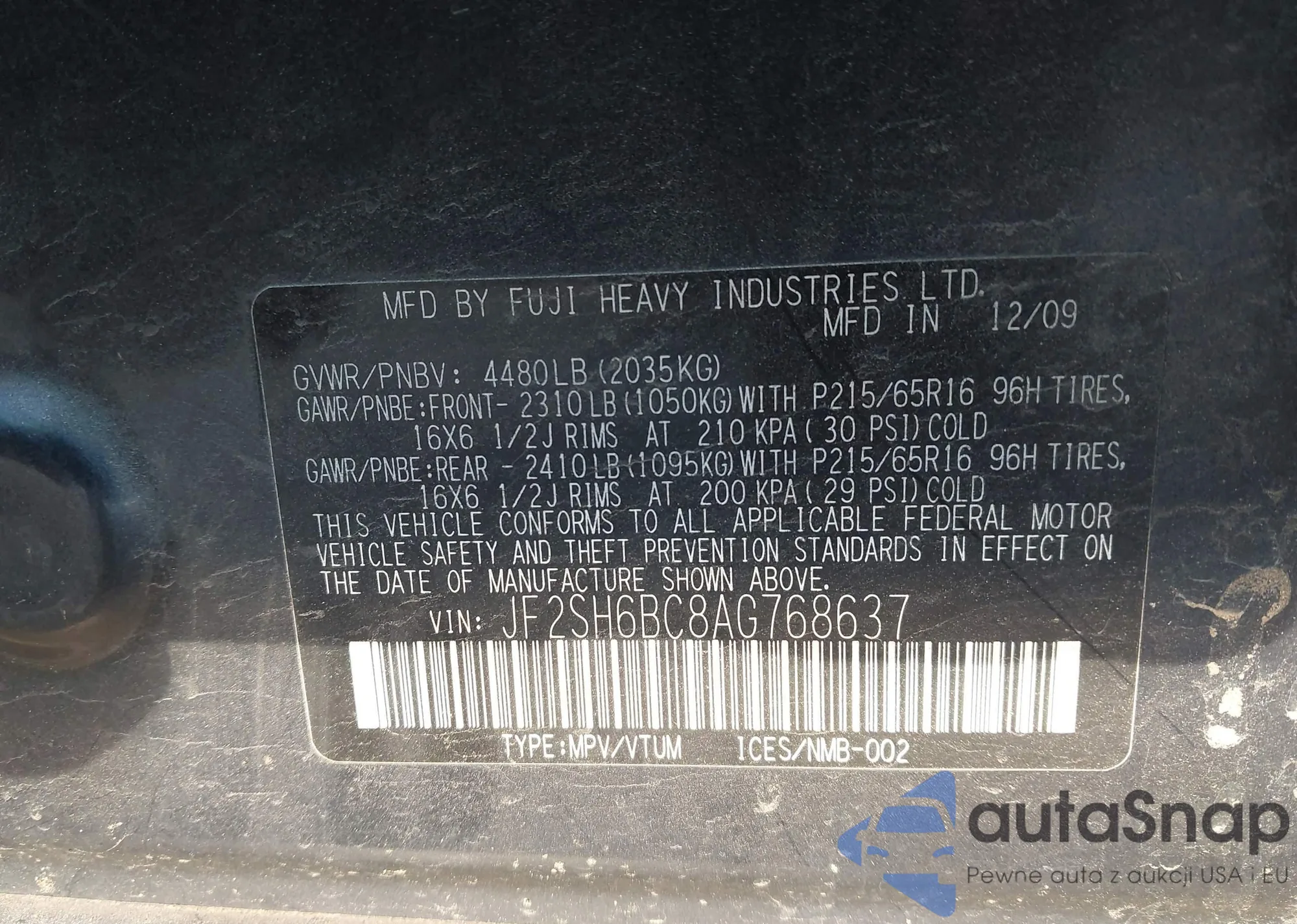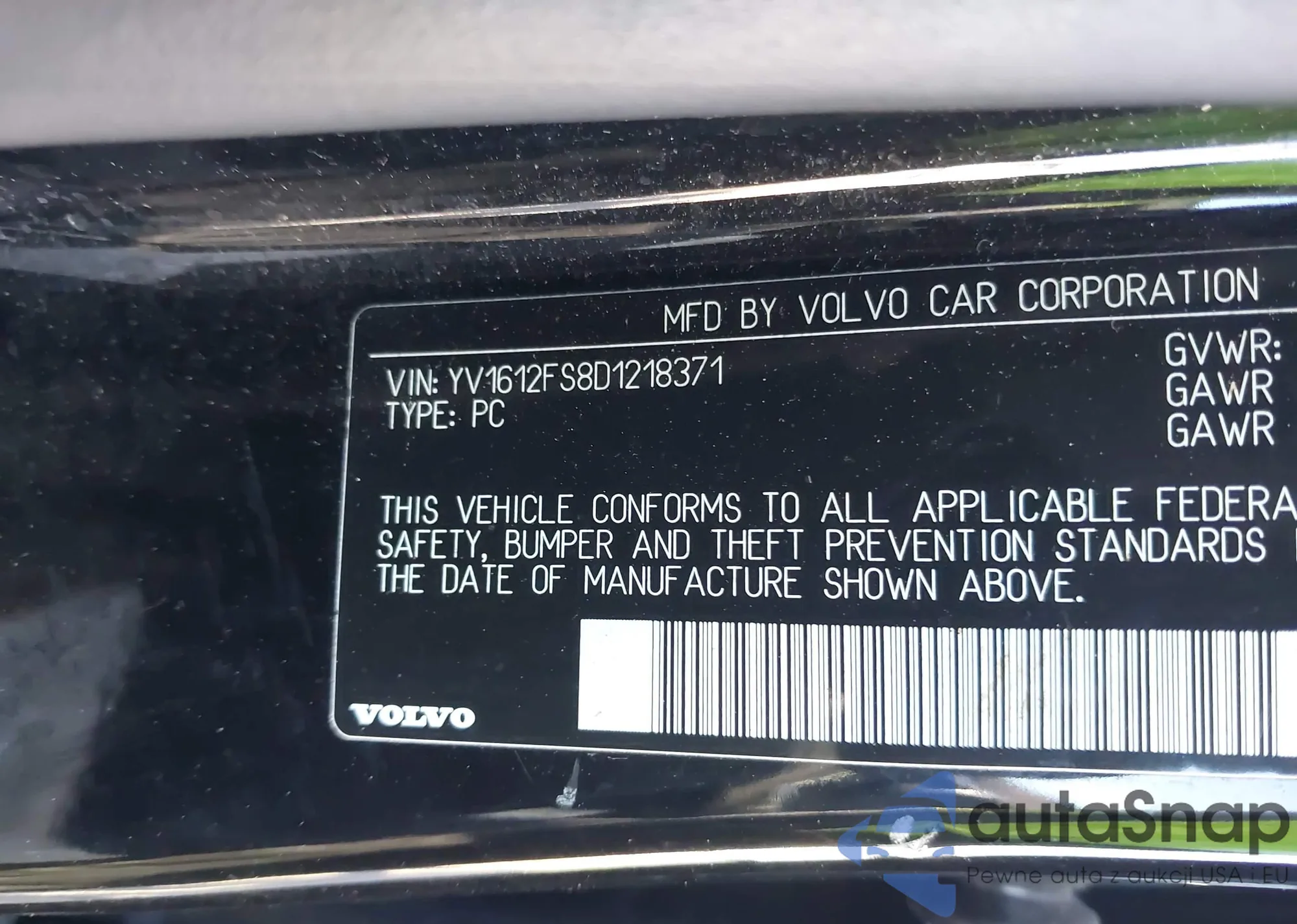 LOT: 43130377 VIN: YV1612FS8D1218371
