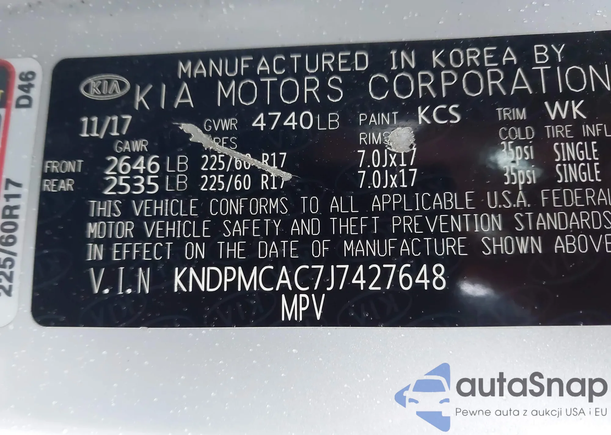 • VIN KNDPMCAC7J7427648