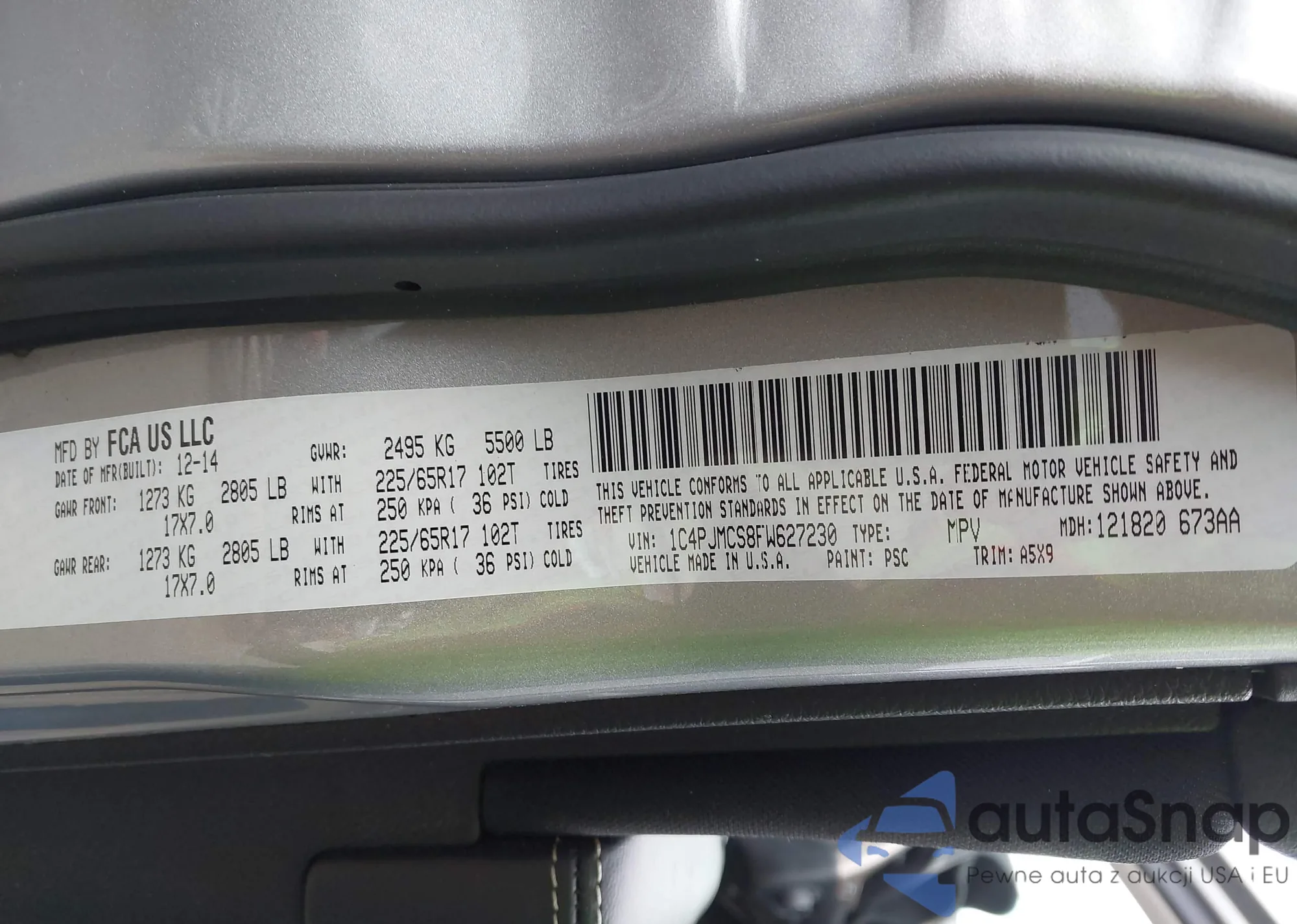LOT: 43469324 VIN: WBA3B3G51FNR86982