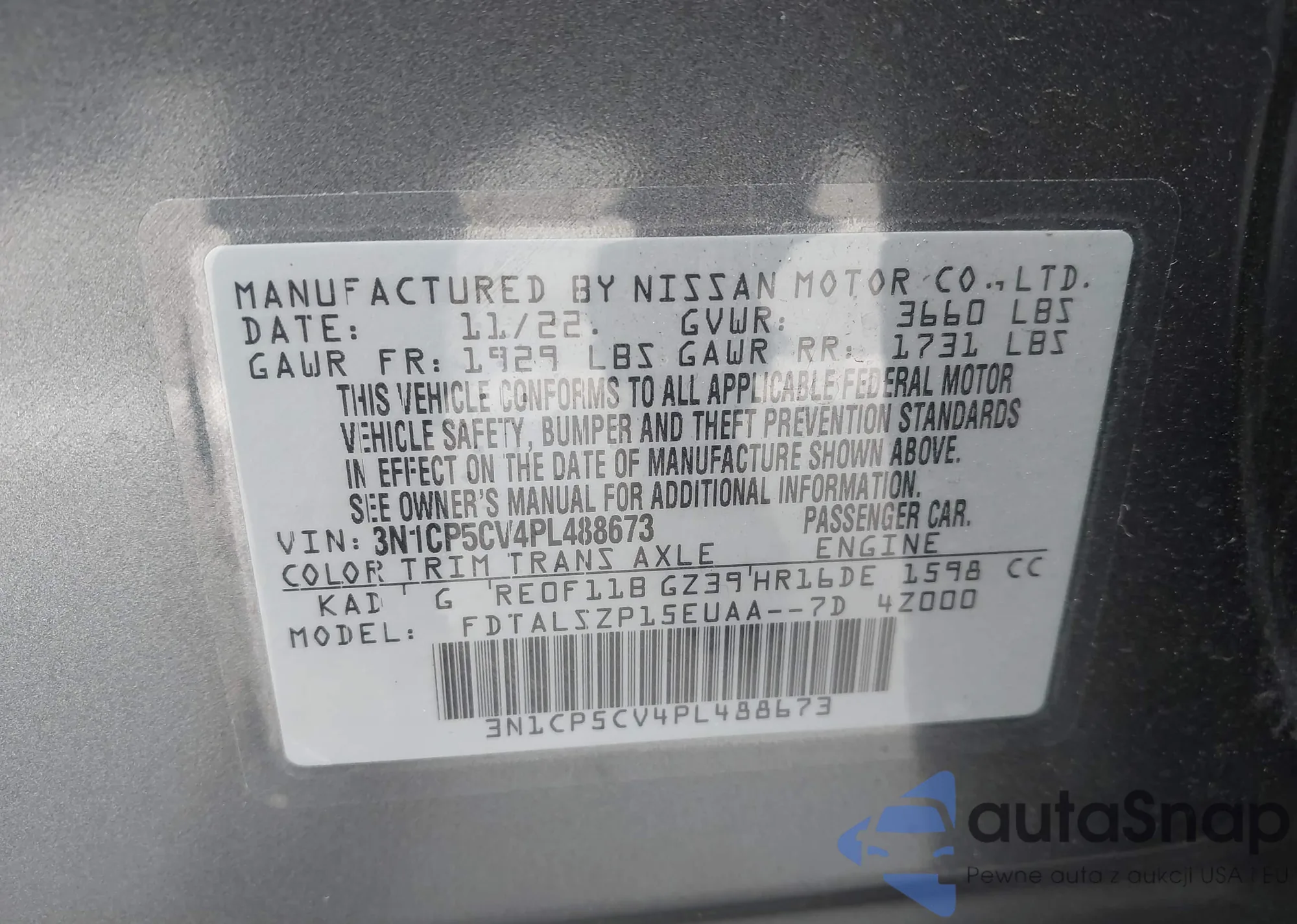 • VIN 3N1CP5CV4PL488673