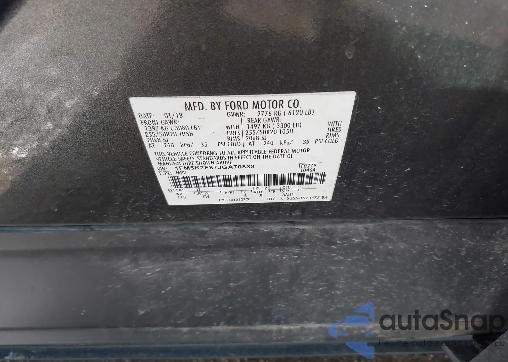 LOT: 43398215 VIN: 1FM5K7F87JGA70833