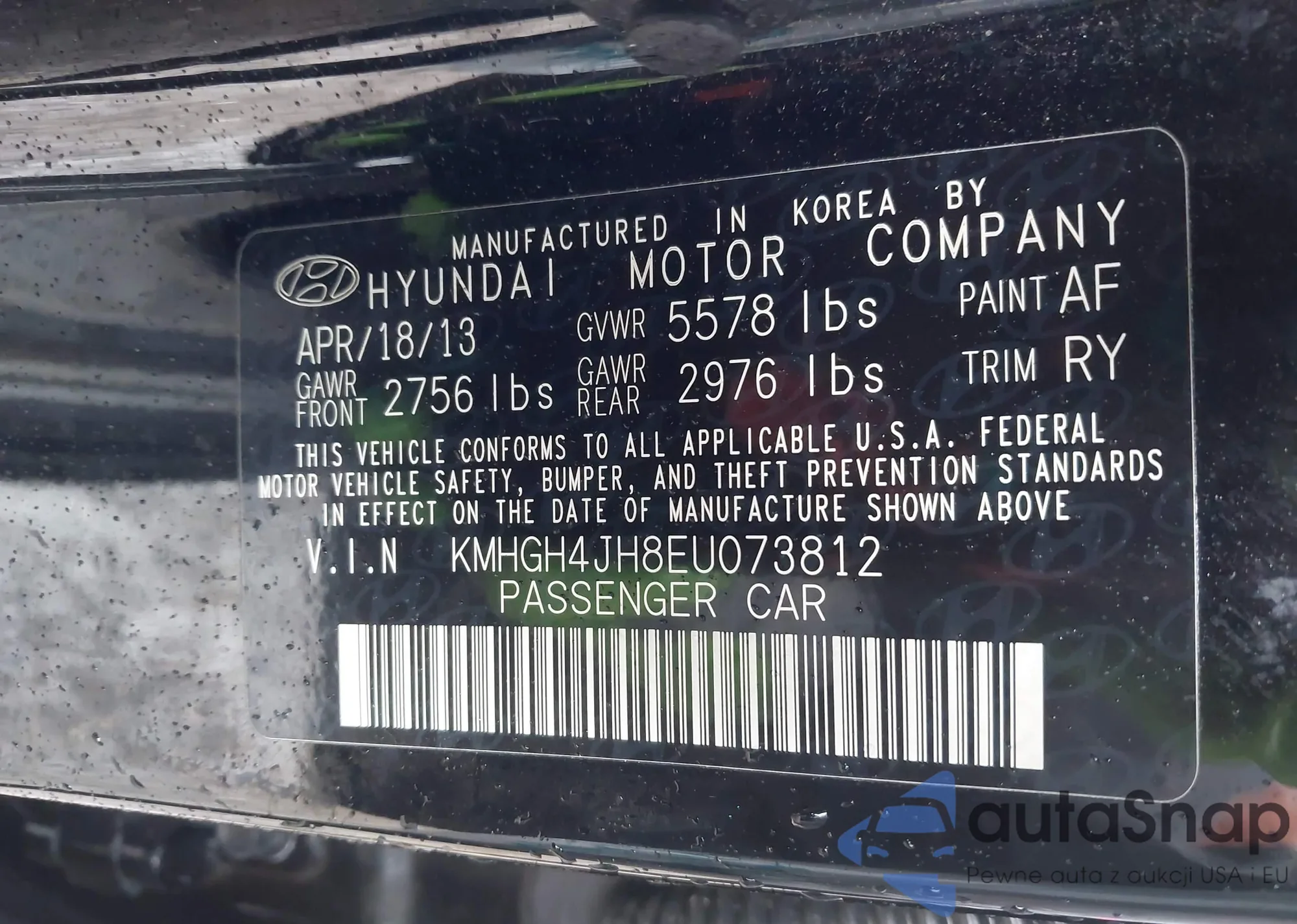 • VIN KMHGH4JH8EU073812