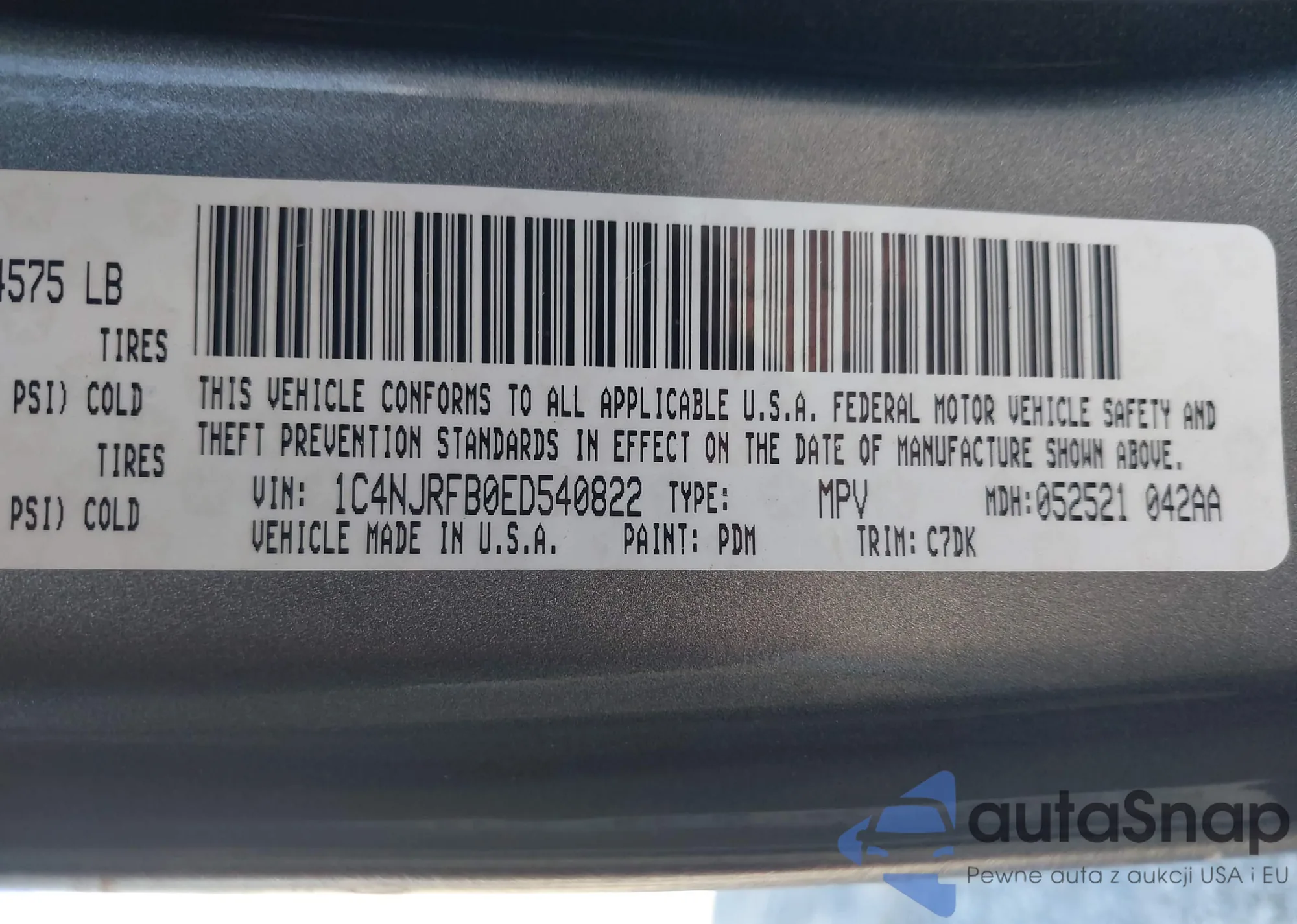 LOT: 43420984 VIN: 1C4NJRFB0ED540822