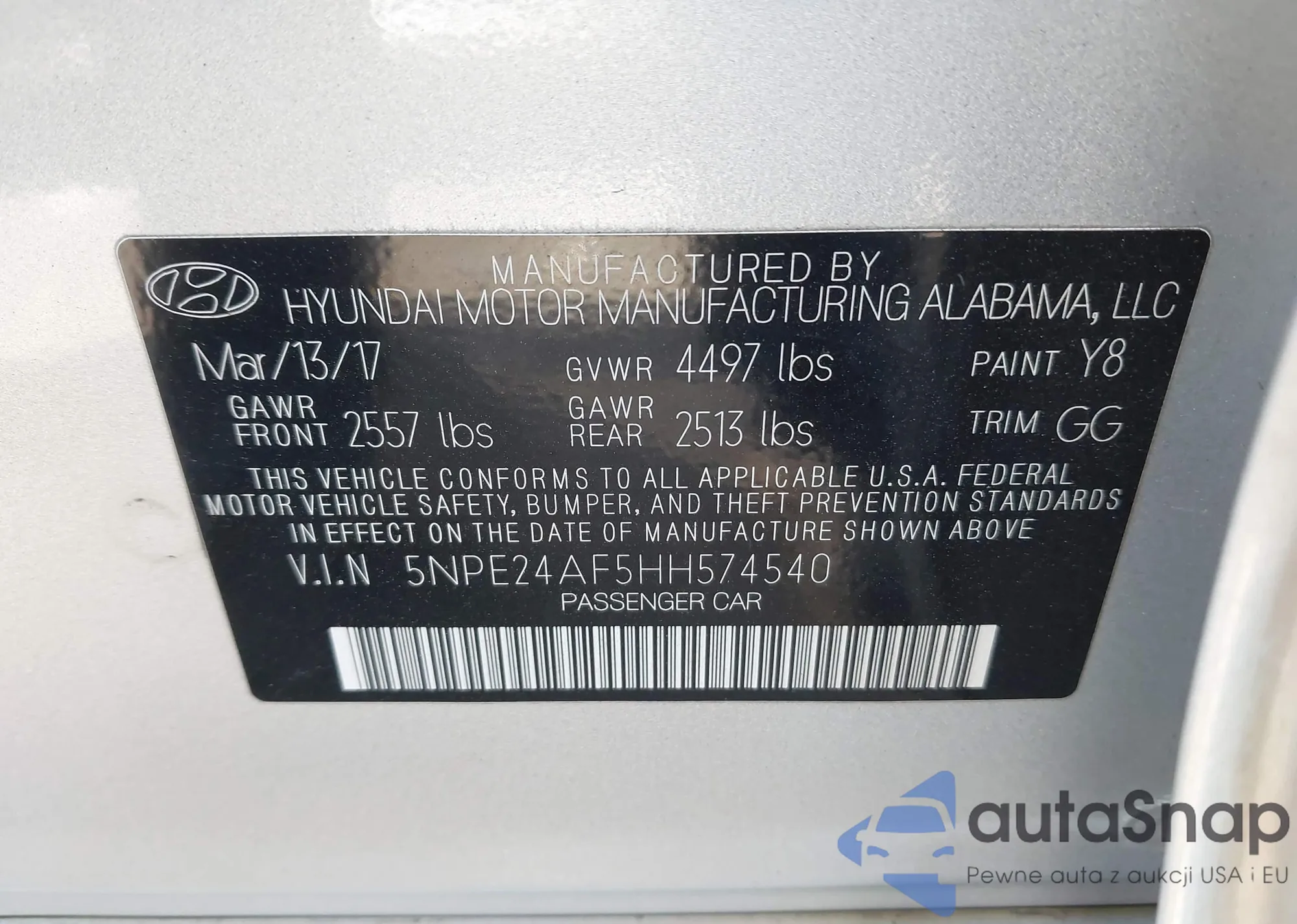 • VIN 5NPE24AF5HH574540