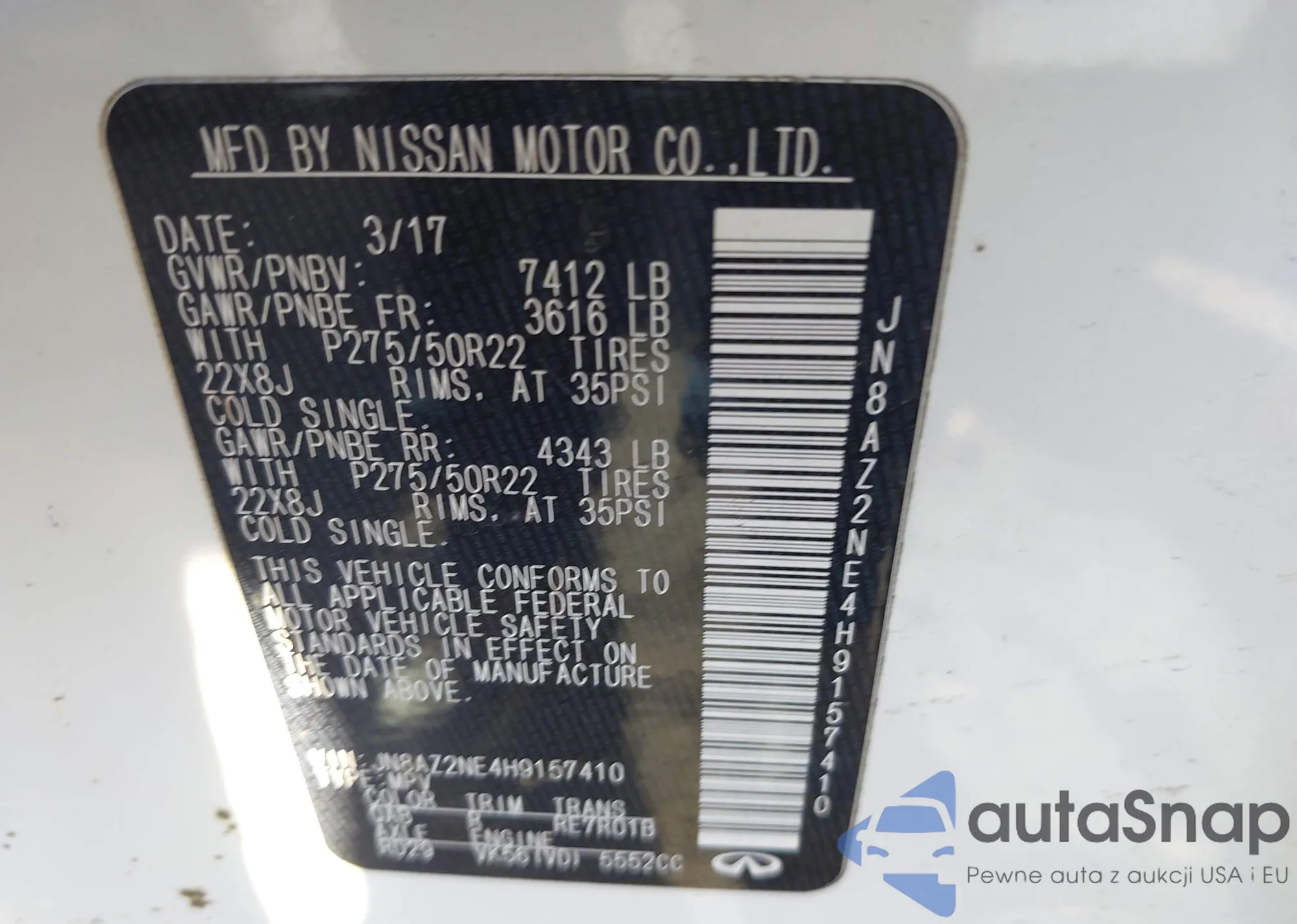 • VIN JN8AZ2NE4H9157410