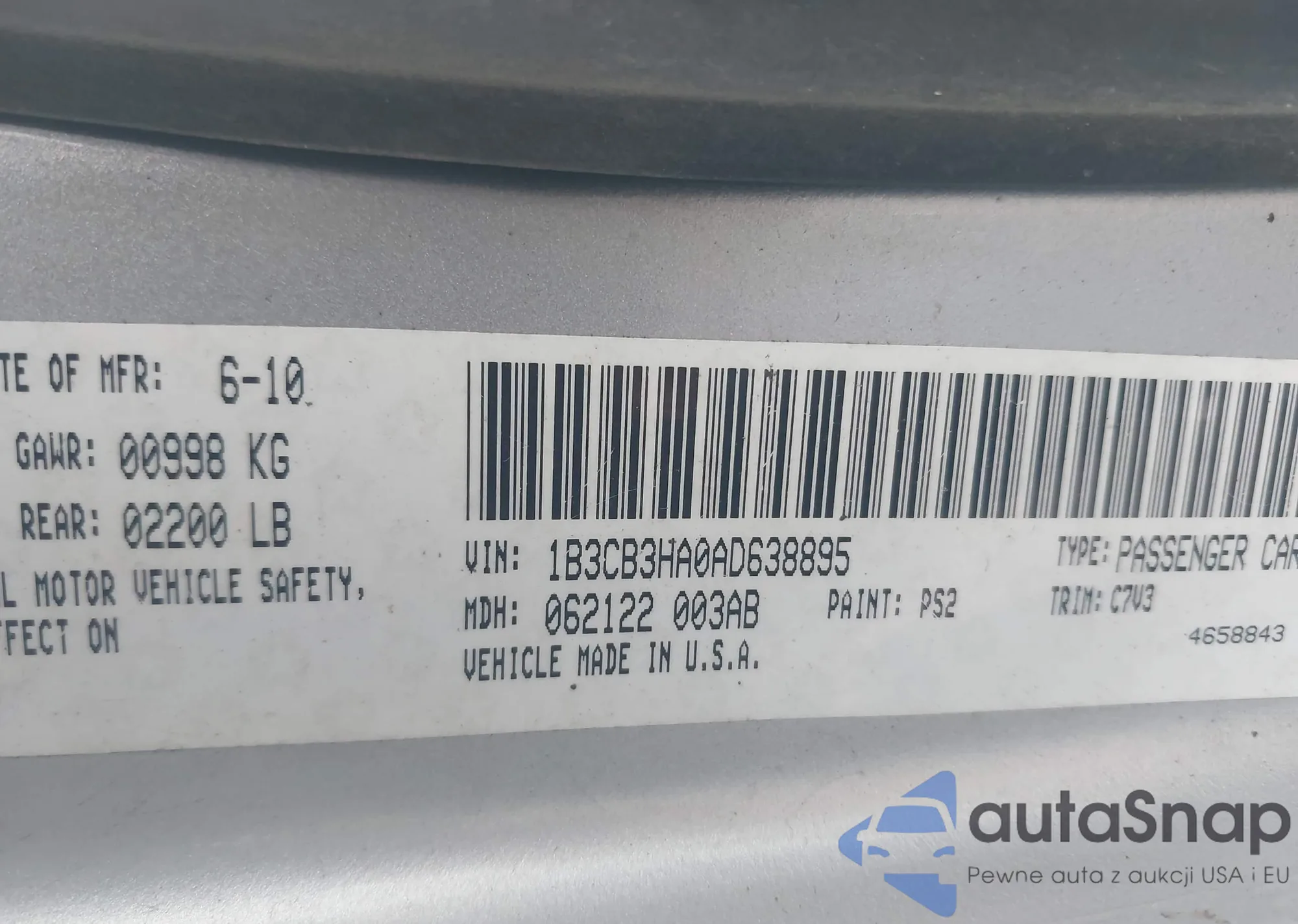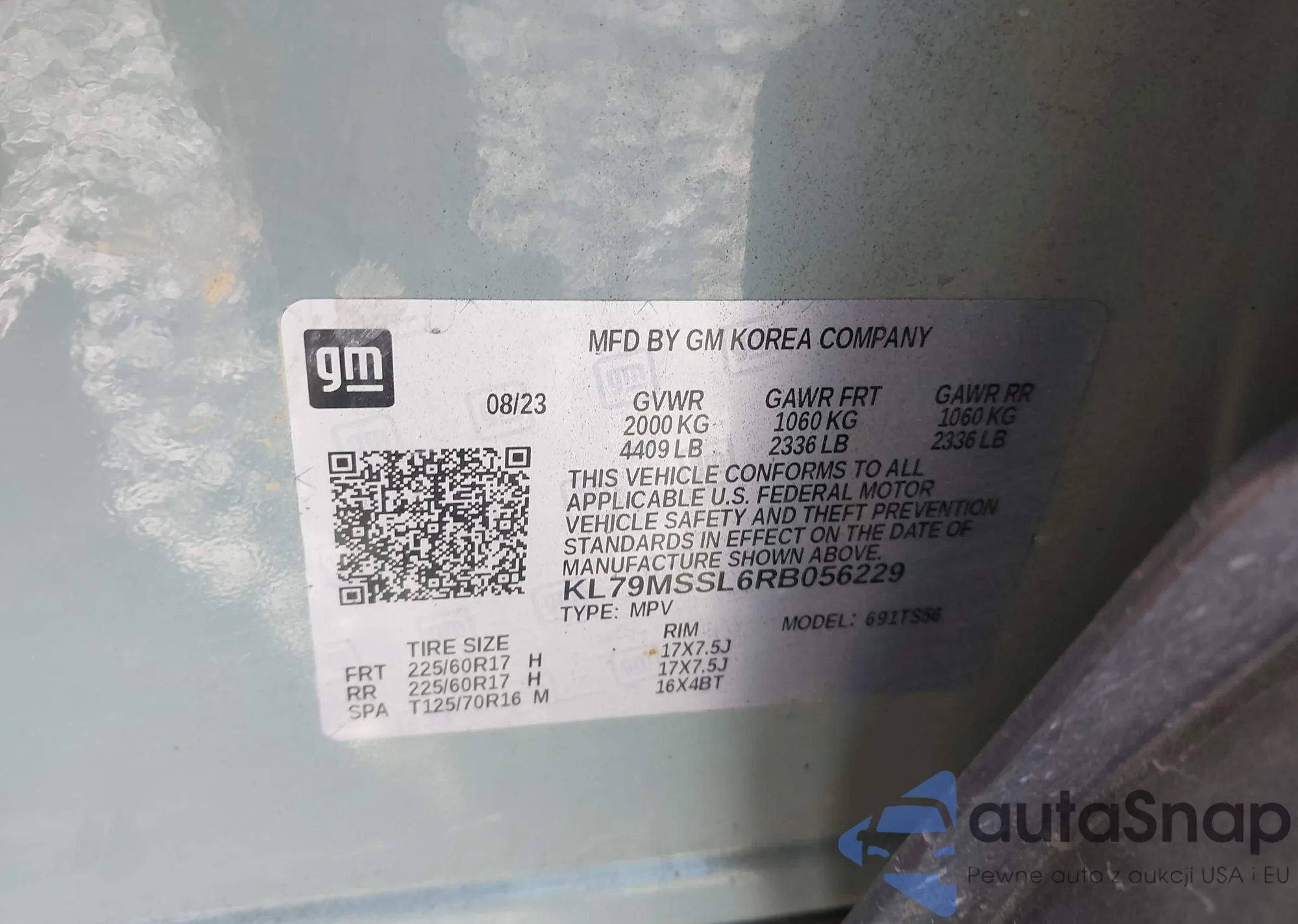 • VIN KL79MSSL6RB056229