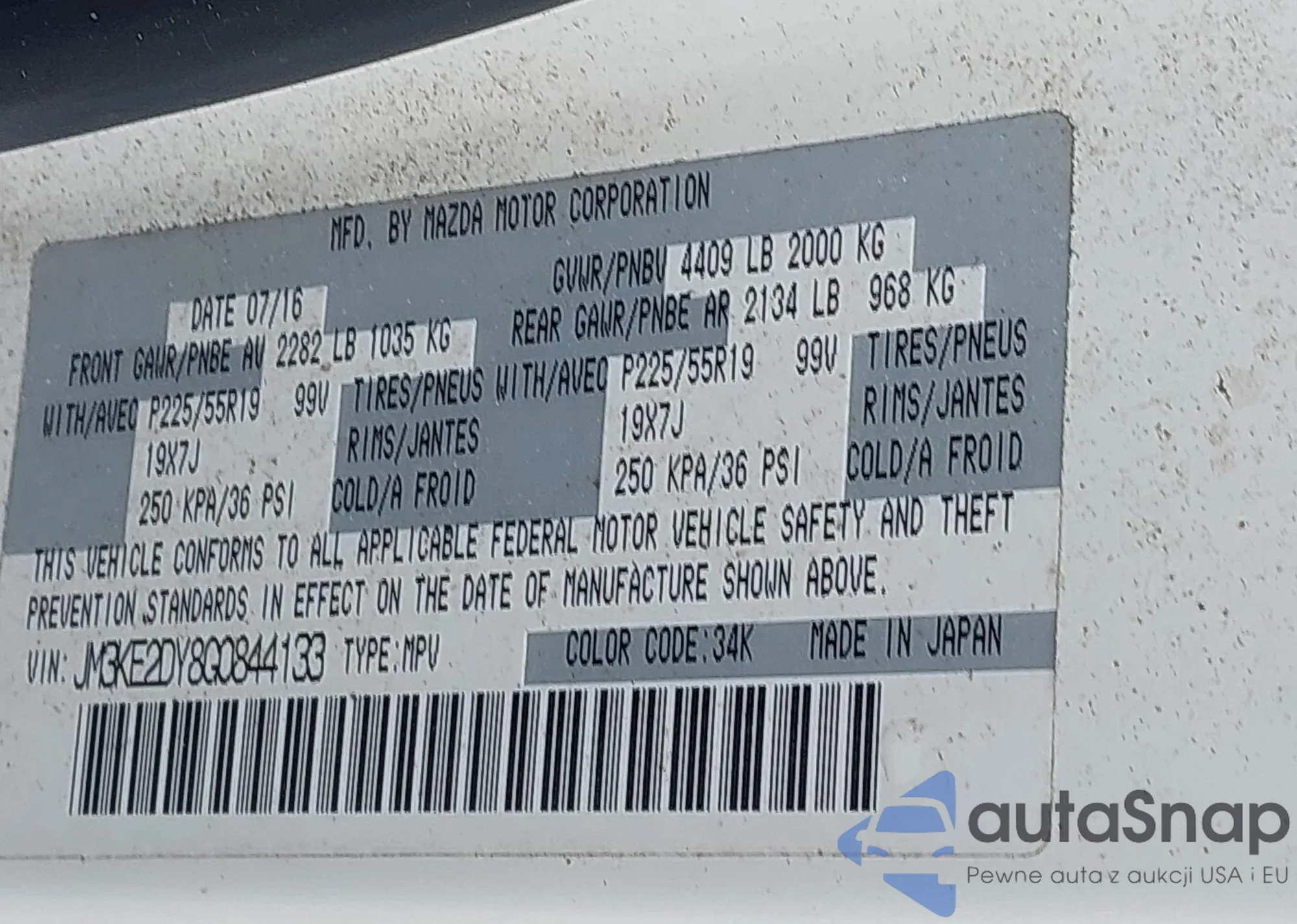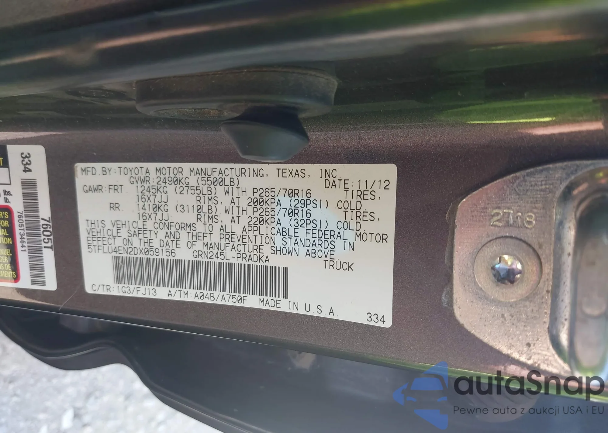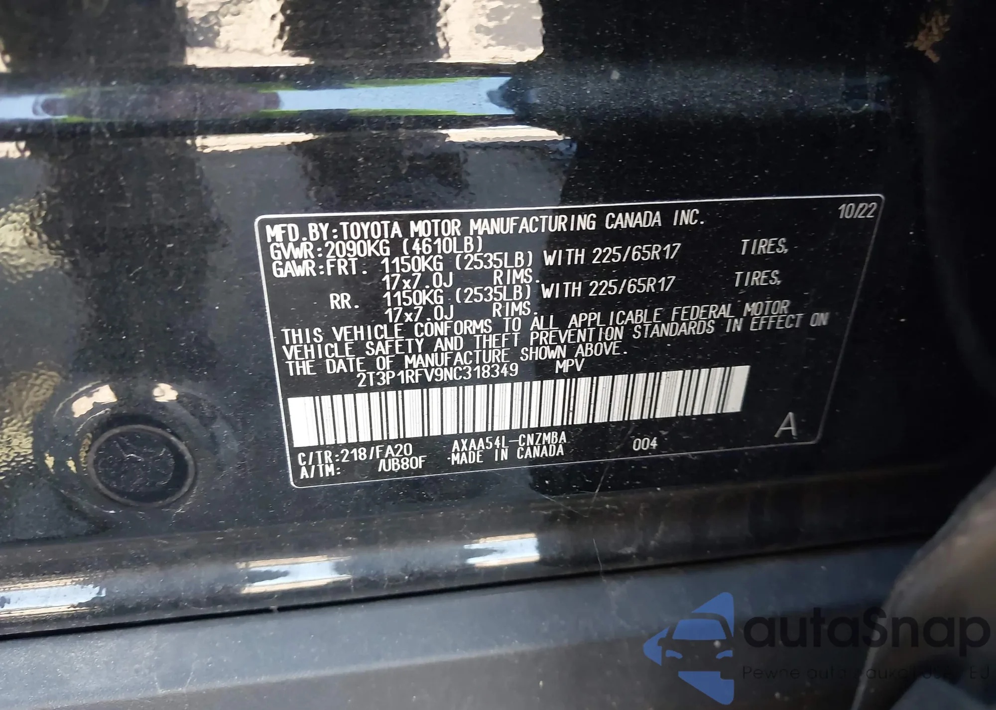 • VIN 2T3P1RFV9NC318349