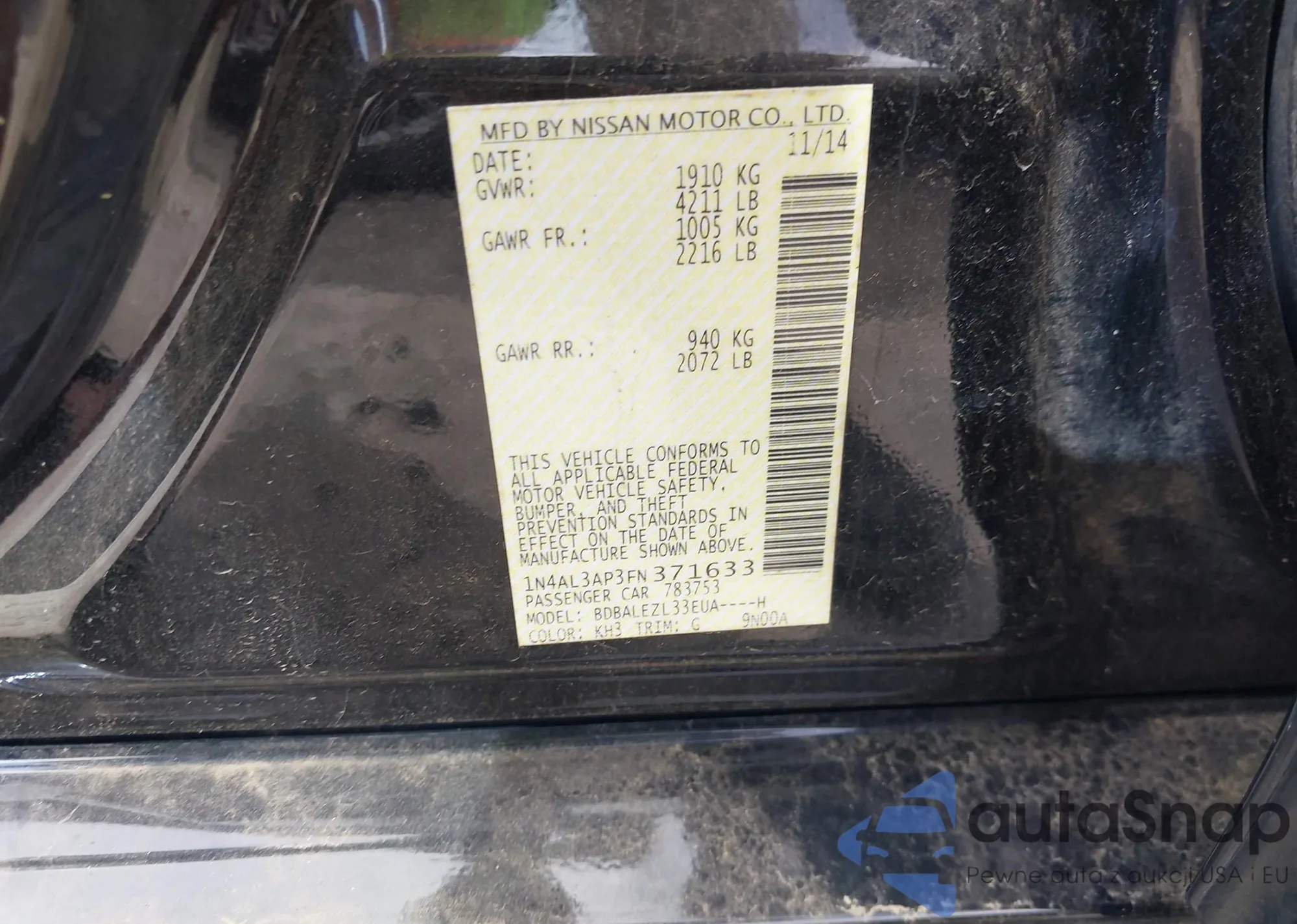 LOT: 43352827 VIN: 1N4AL3AP3FN371633