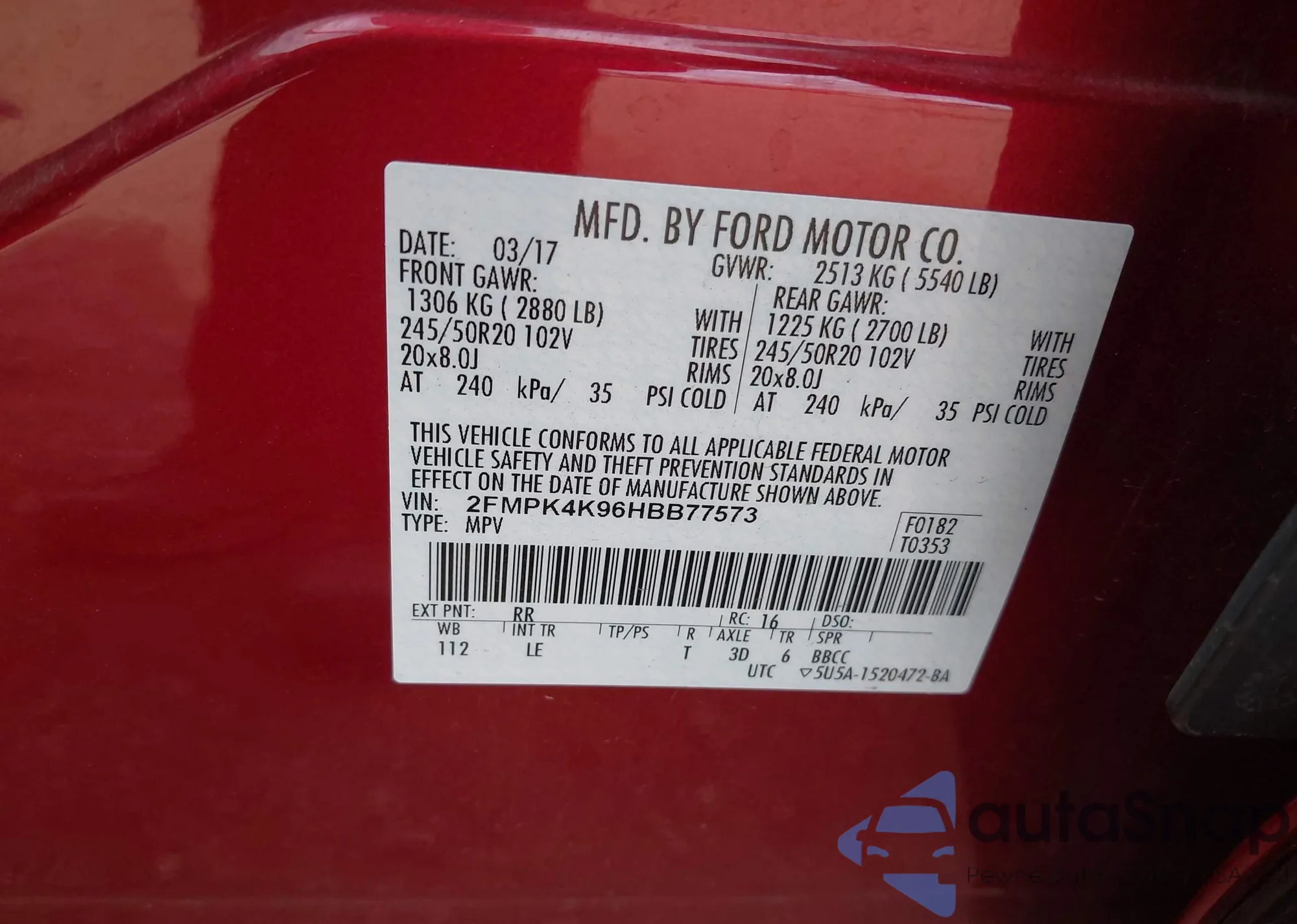 • VIN 2FMPK4K96HBB77573