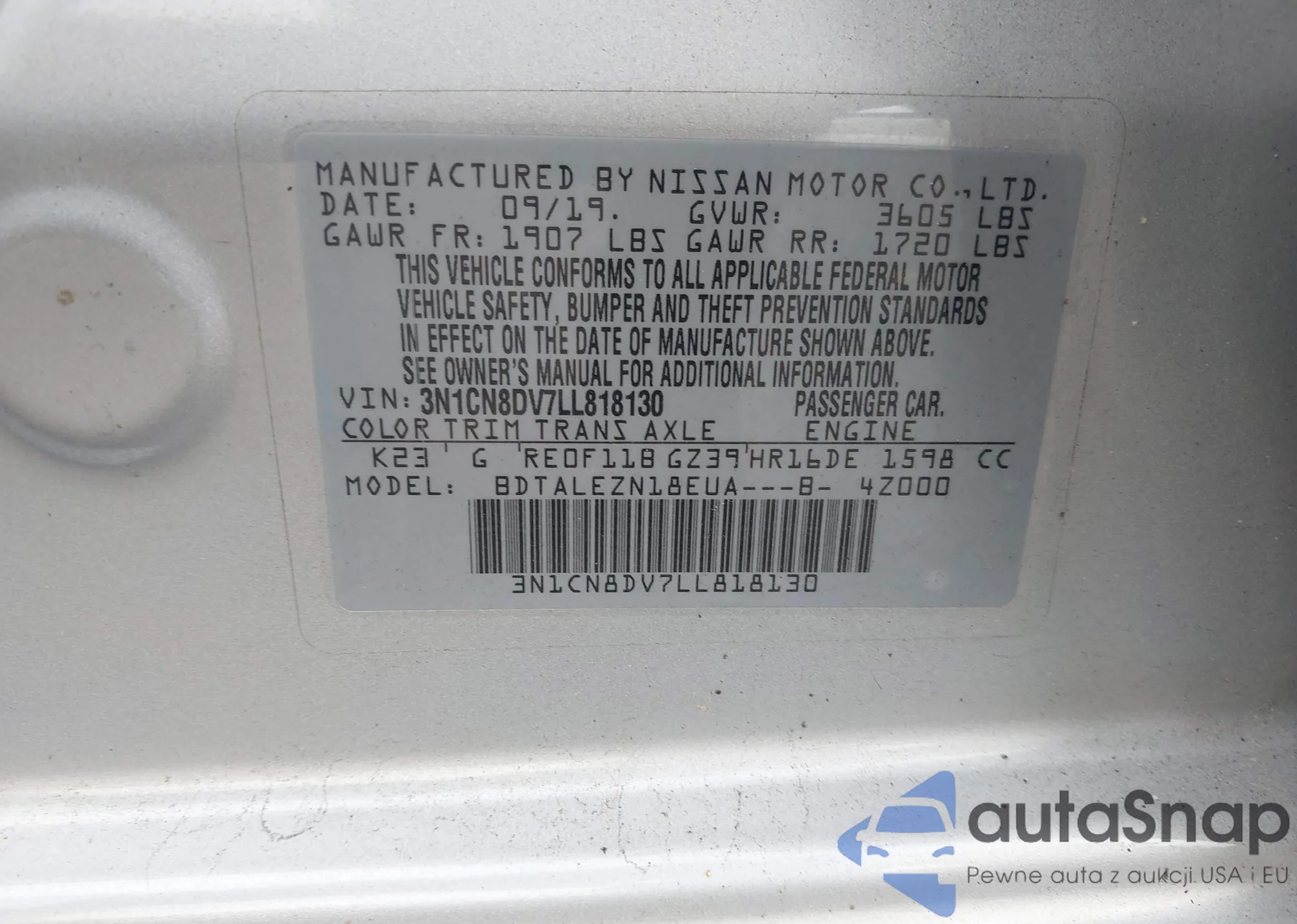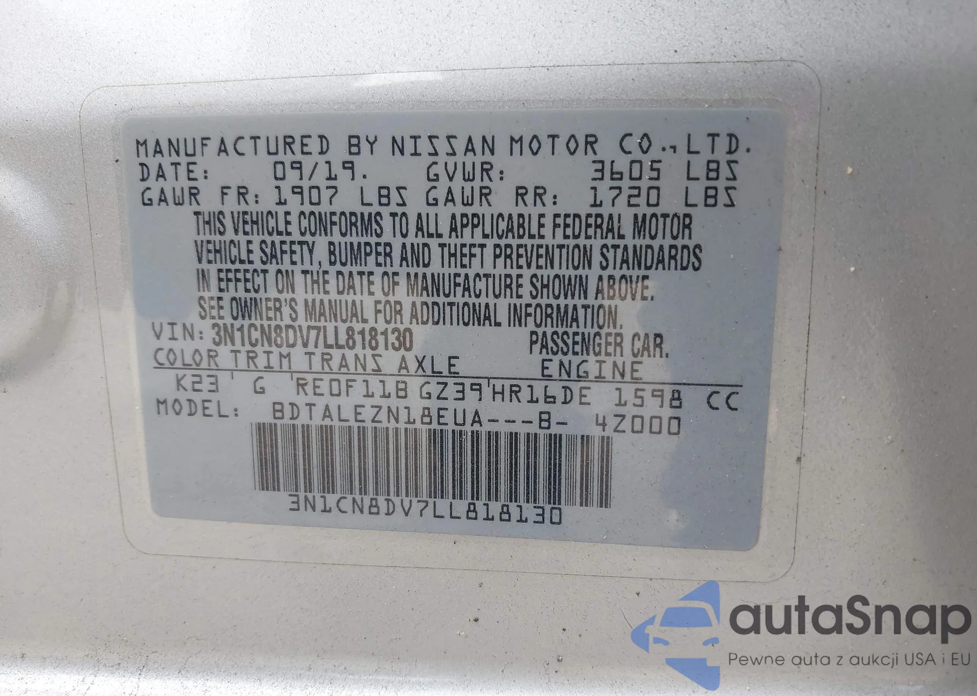 • VIN 3N1CN8DV7LL818130