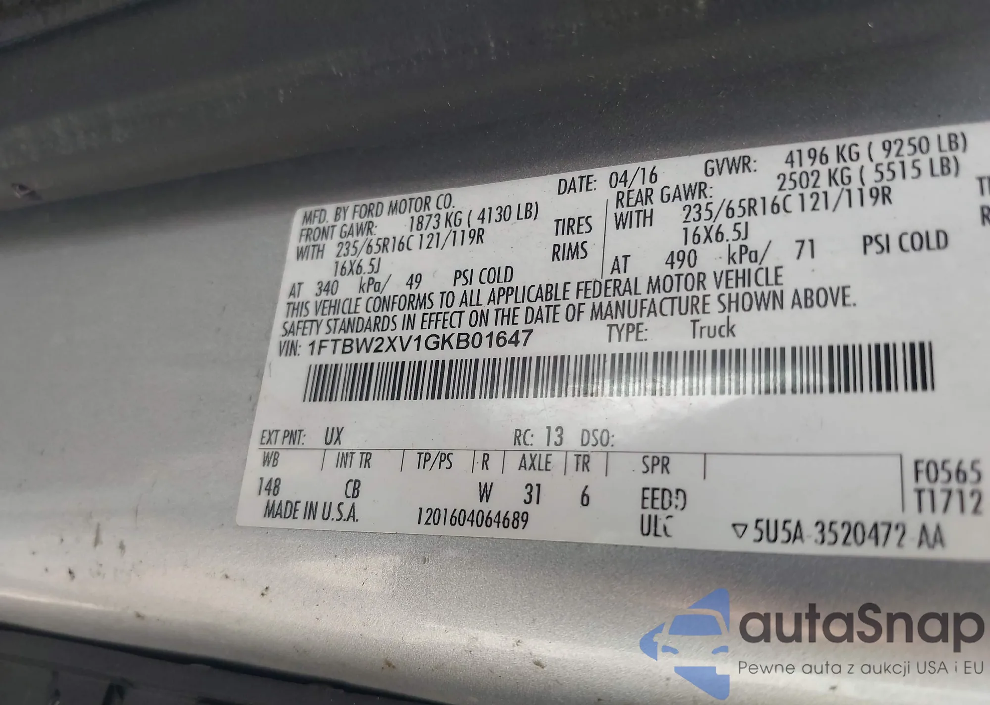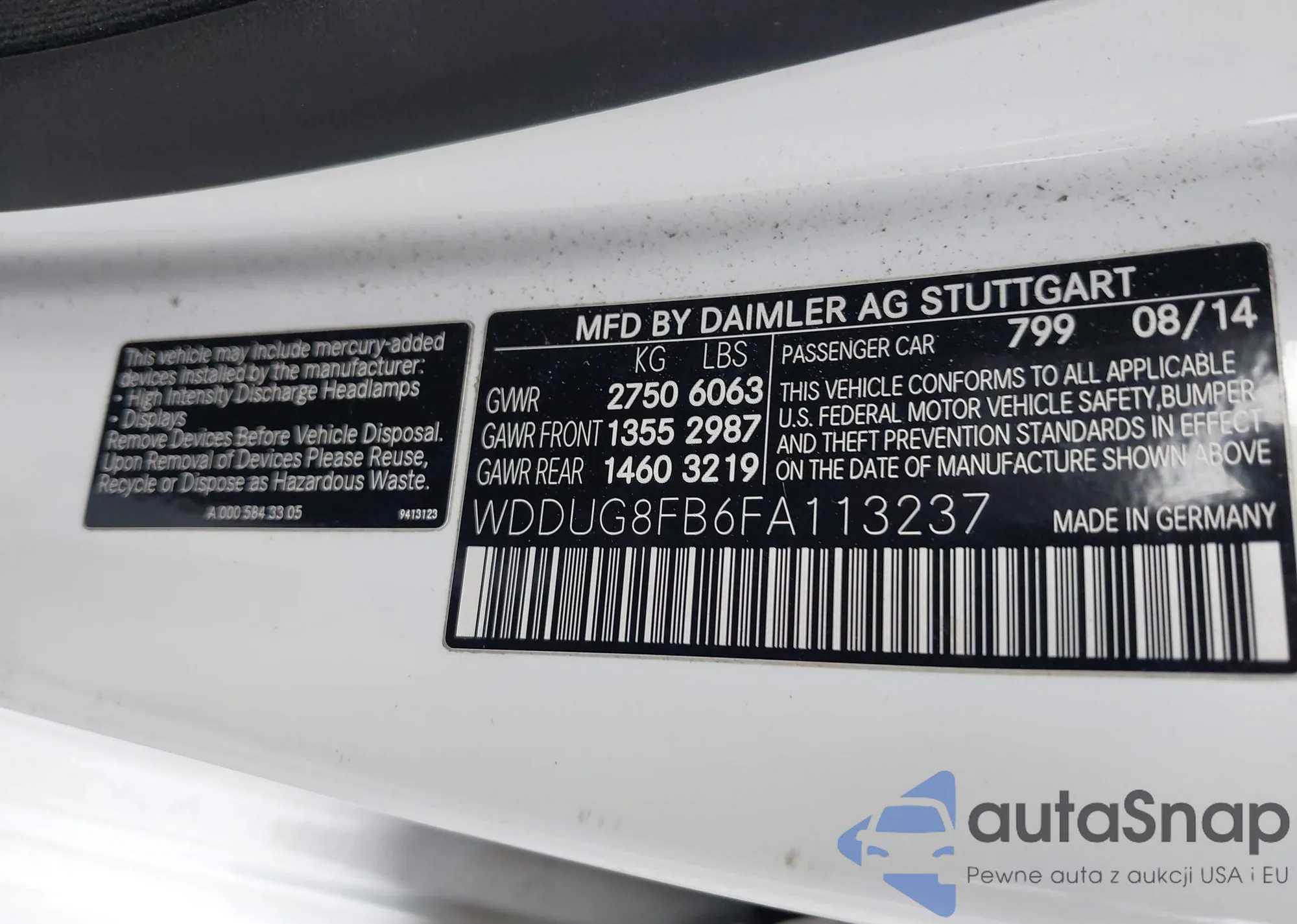 LOT: 43612353 VIN: WDDUG8FB6FA113237