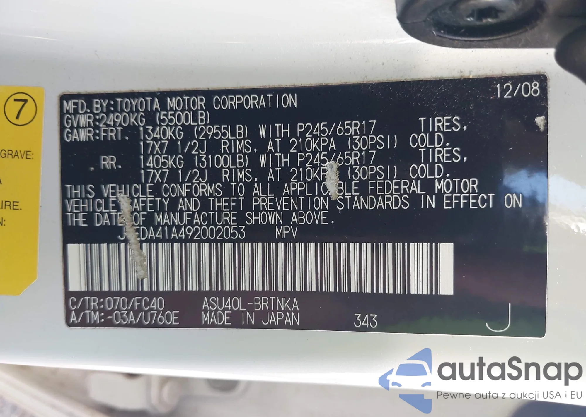 LOT: 43280032 VIN: JTJGZKCA8J2000979