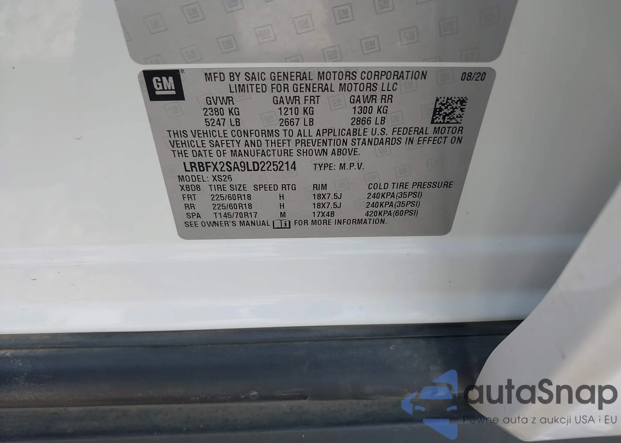 LOT: 42191408 VIN: ZACNJBAB0LPL32160