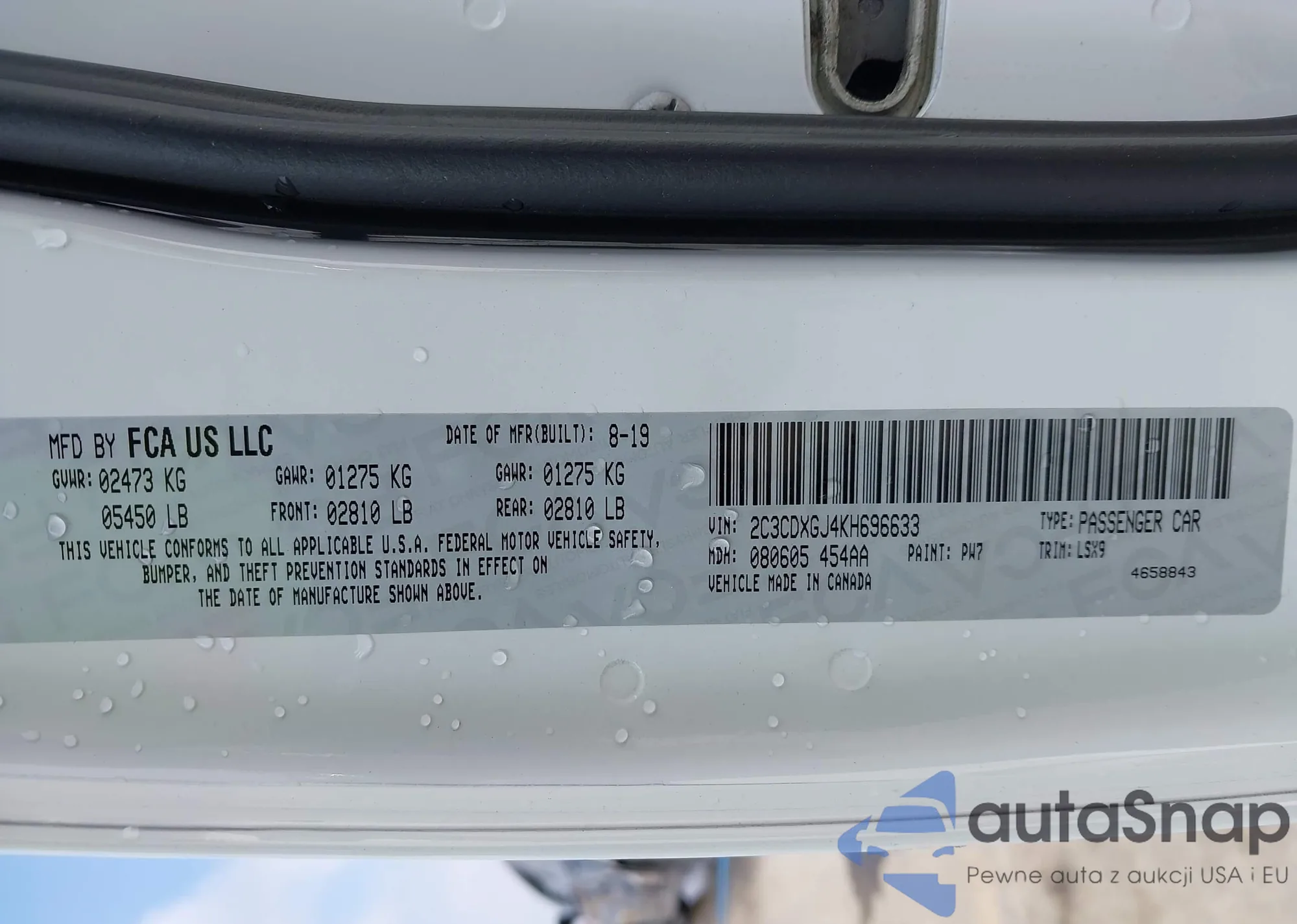 LOT: 43520442 VIN: 2C3CDXGJ4KH696633