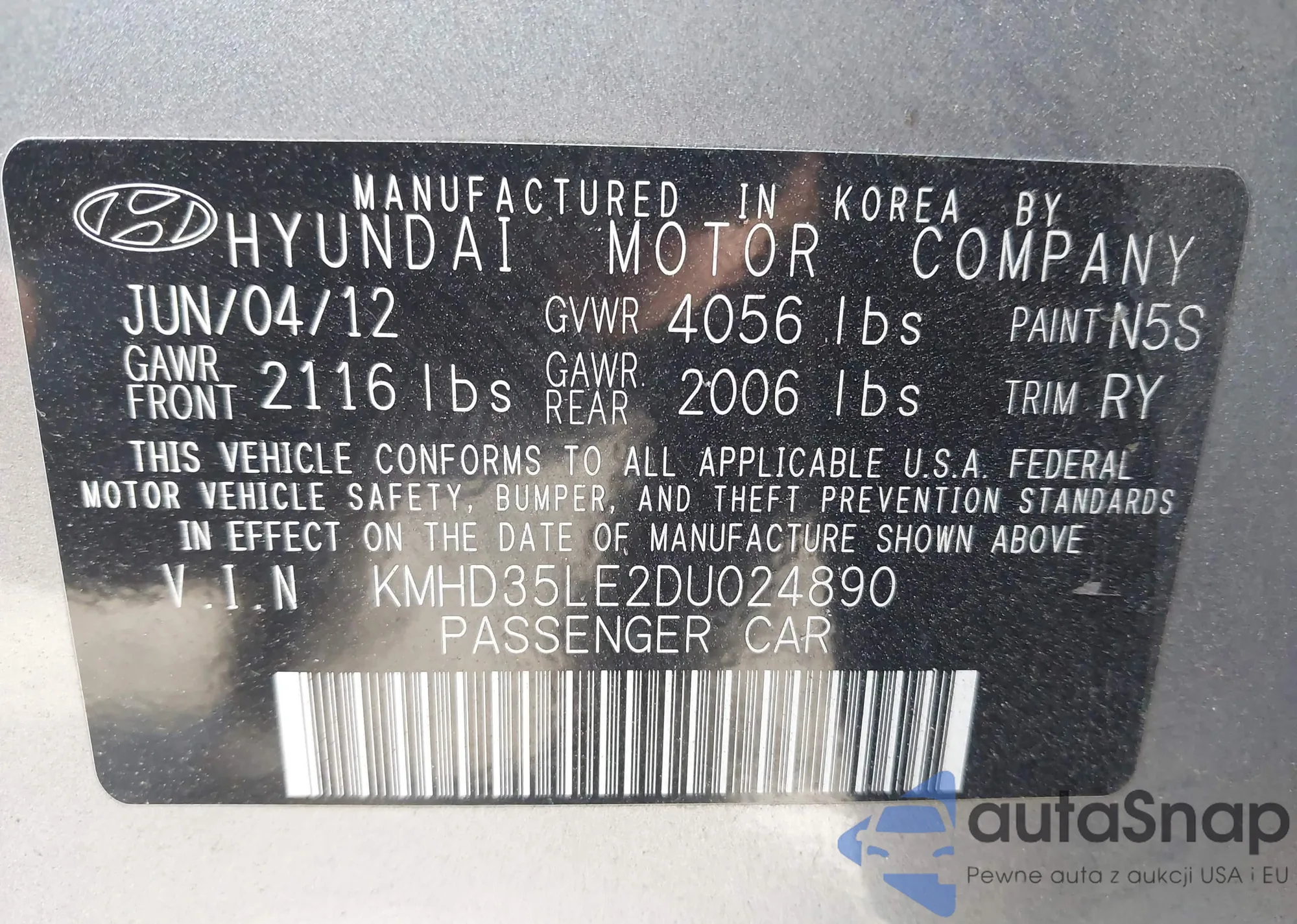 • VIN KMHD35LE2DU024890