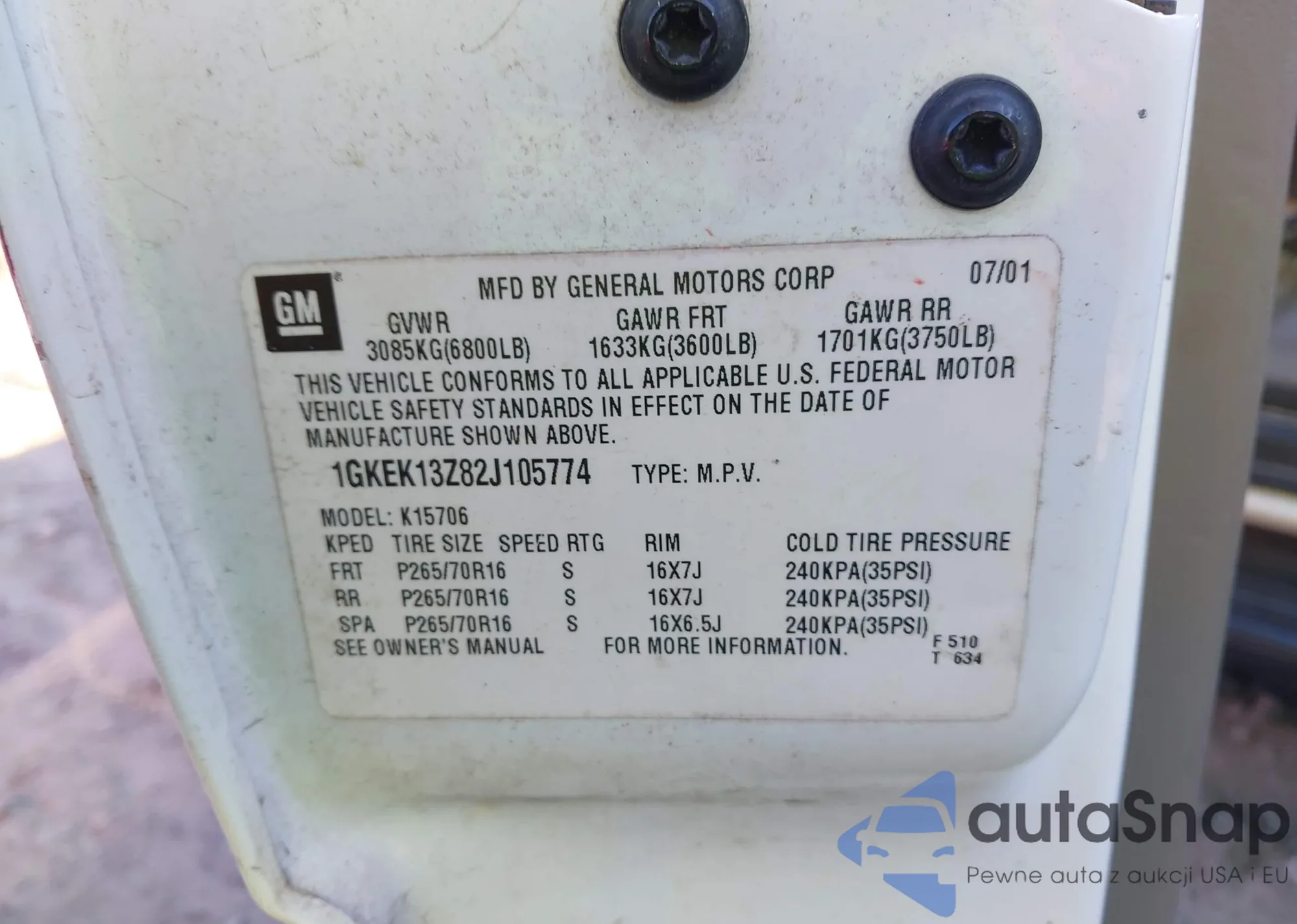 • VIN 1GKEK13Z82J105774
