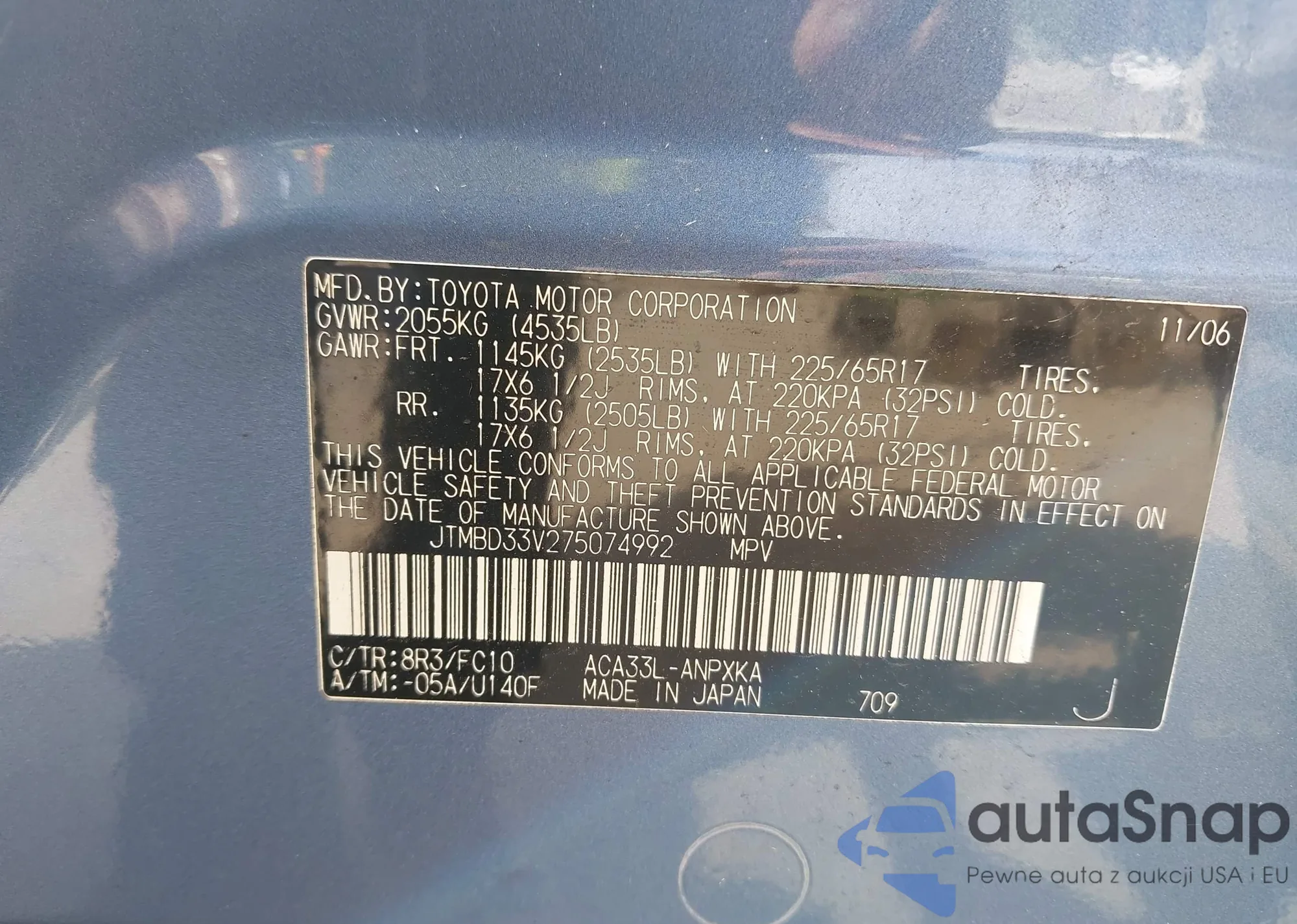 LOT: 43260488 VIN: JTDJT923285189384