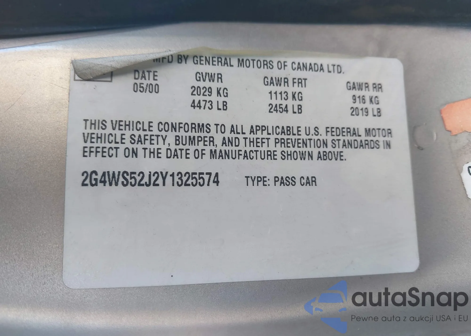 LOT: 43576856 VIN: 2G4WS52J2Y1325574