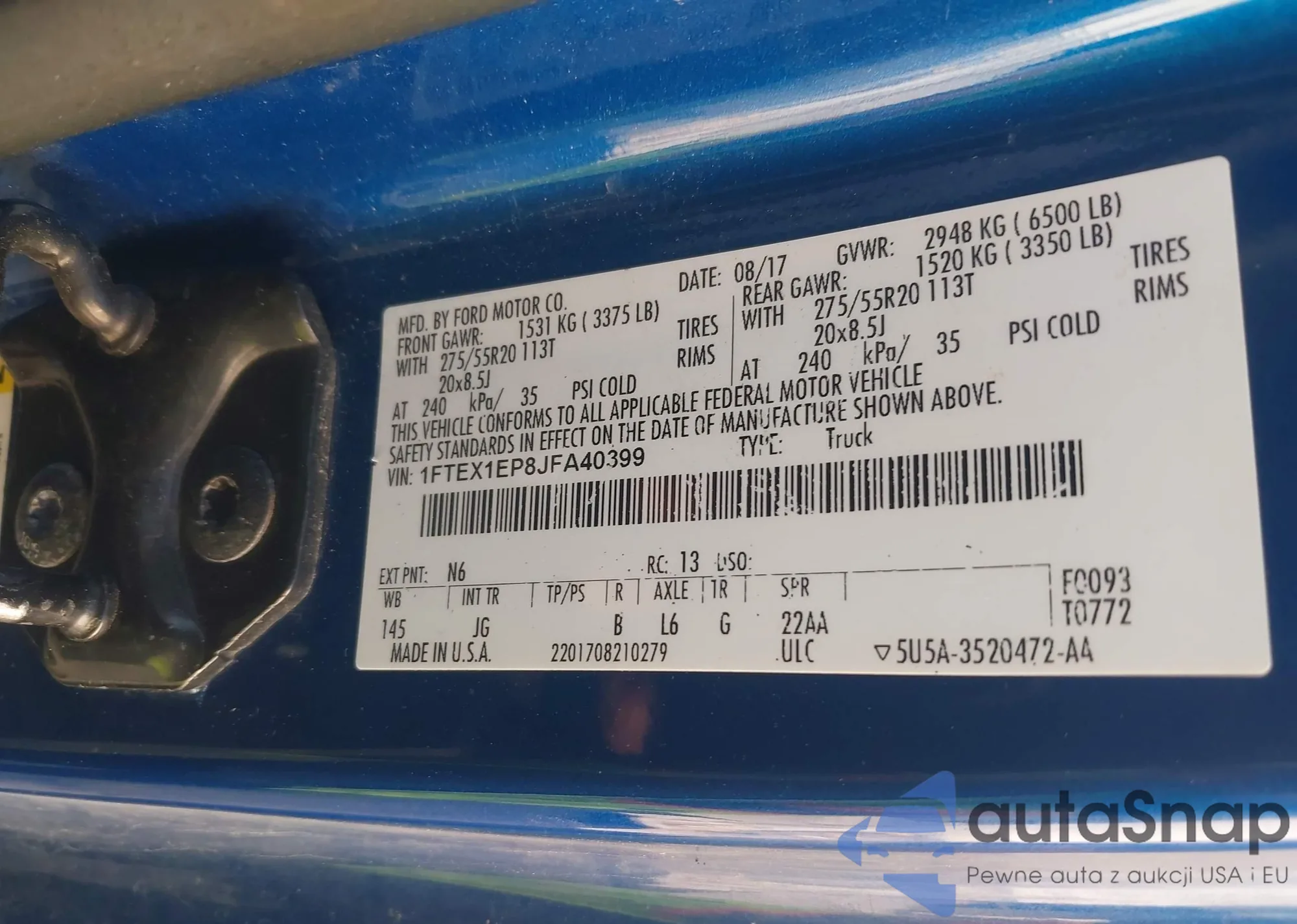 LOT: 43160599 VIN: 1FTEX1EP8JFA40399