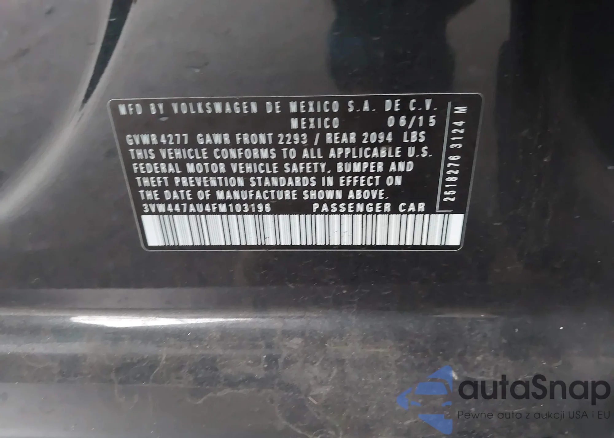 • VIN 3VW447AU4FM103196