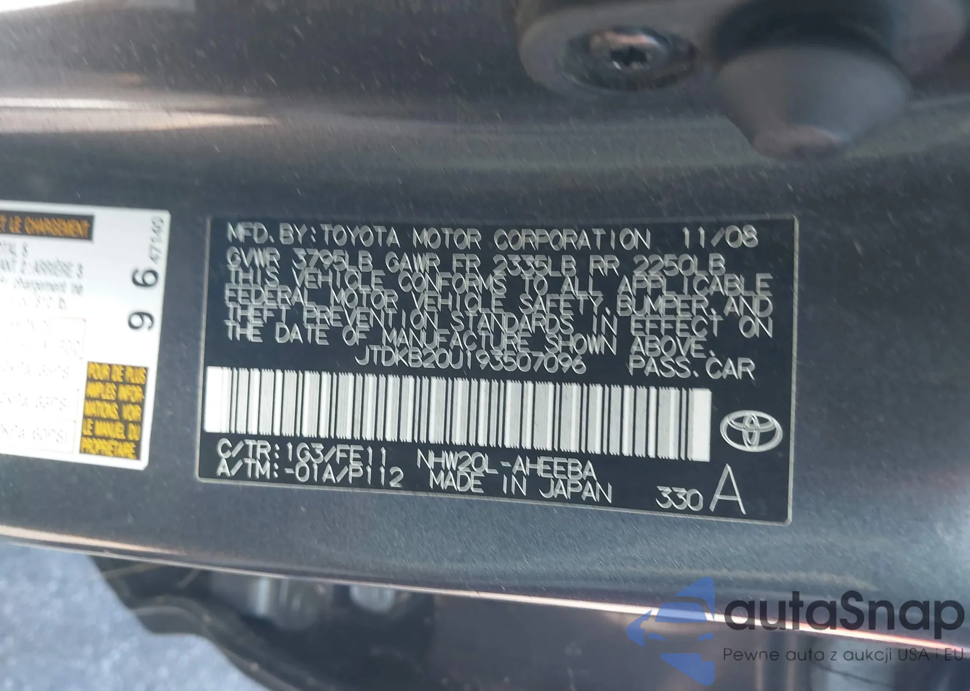 LOT: 43498398 VIN: JTDKB20U193507096