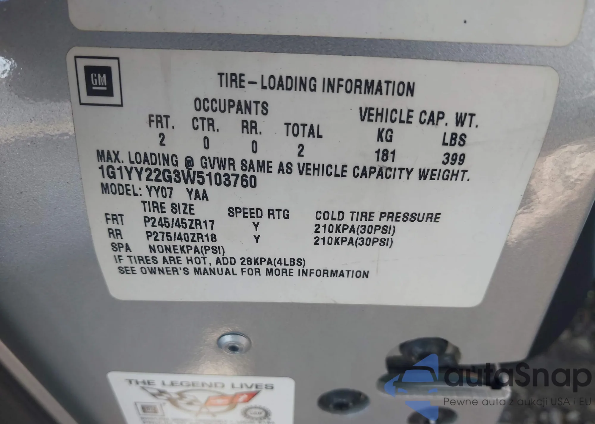 • VIN 1G1YY22G3W5103760