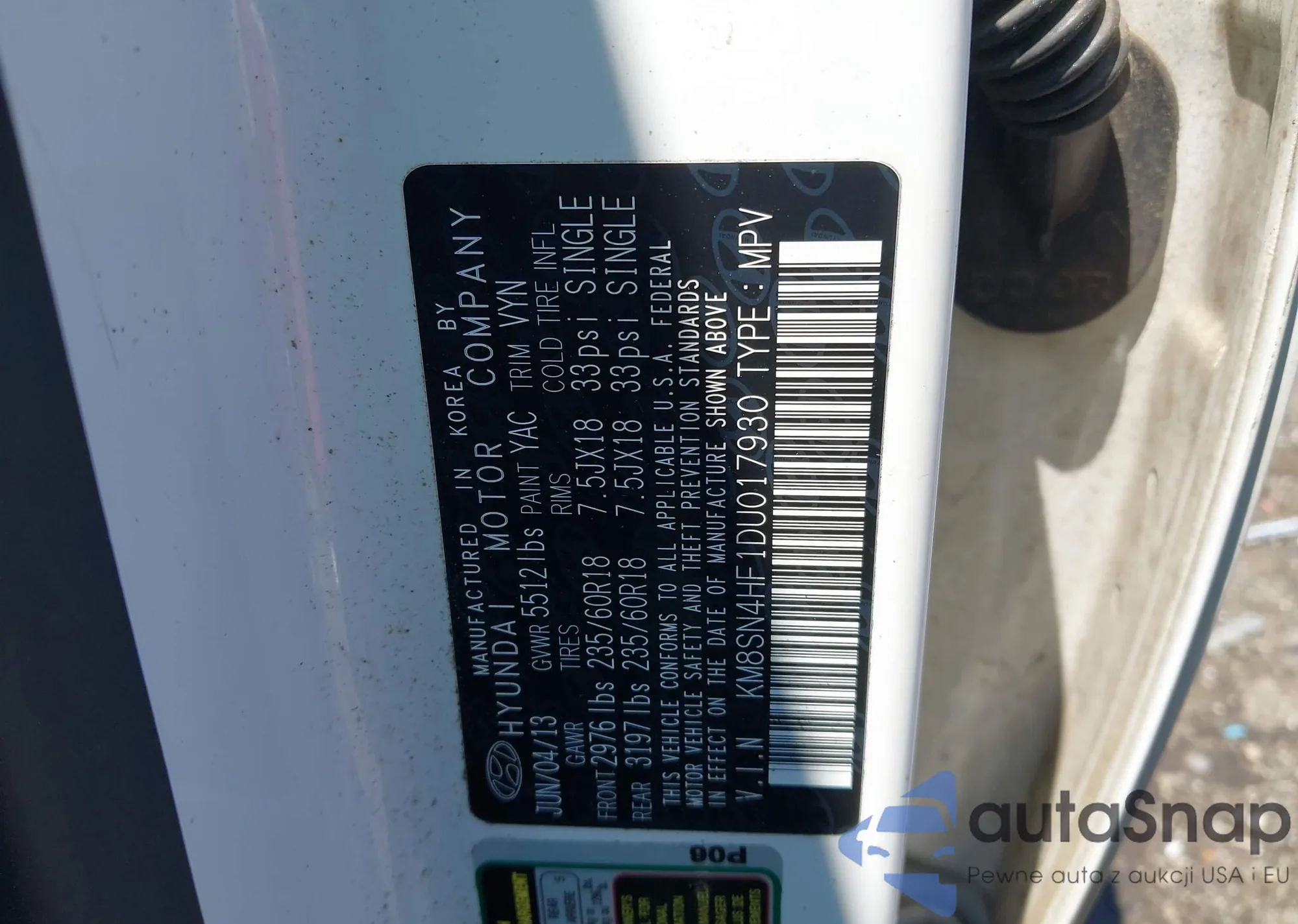 • VIN KM8SN4HF1DU017930