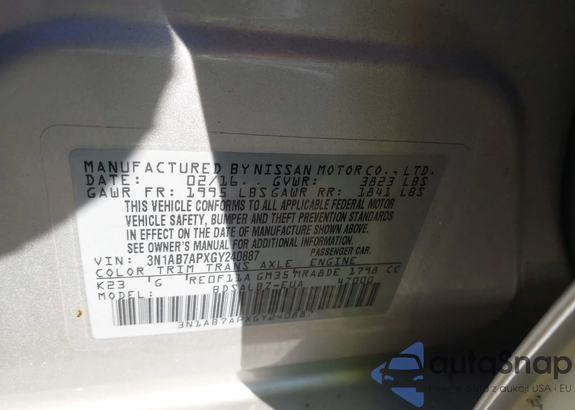 • VIN 3N1AB7APXGY240887