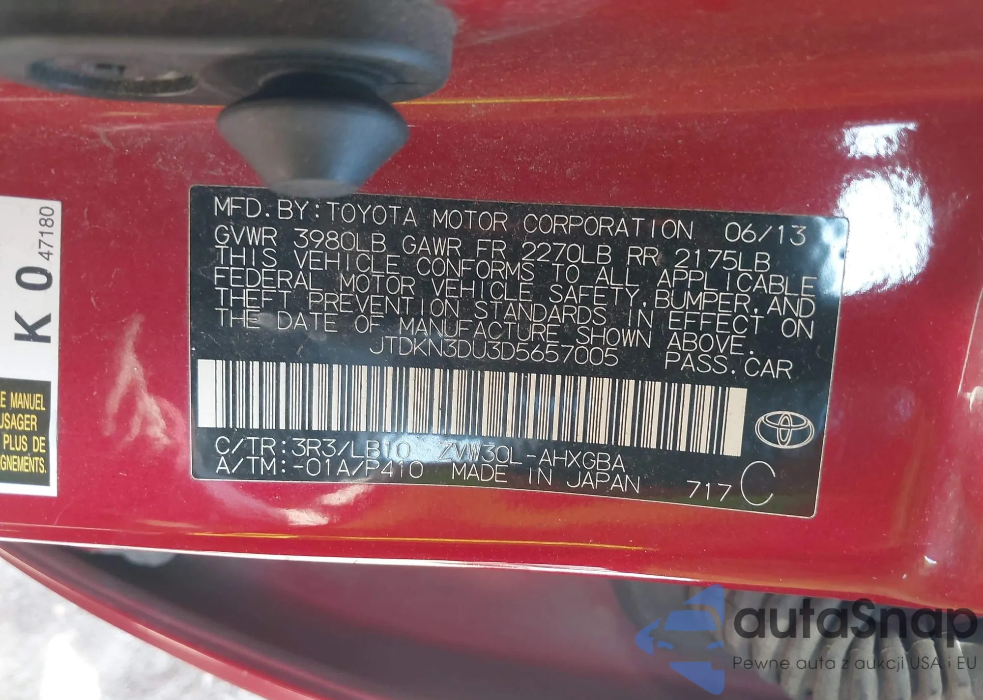 LOT: 43245997 VIN: JTDKN3DU3D5657005