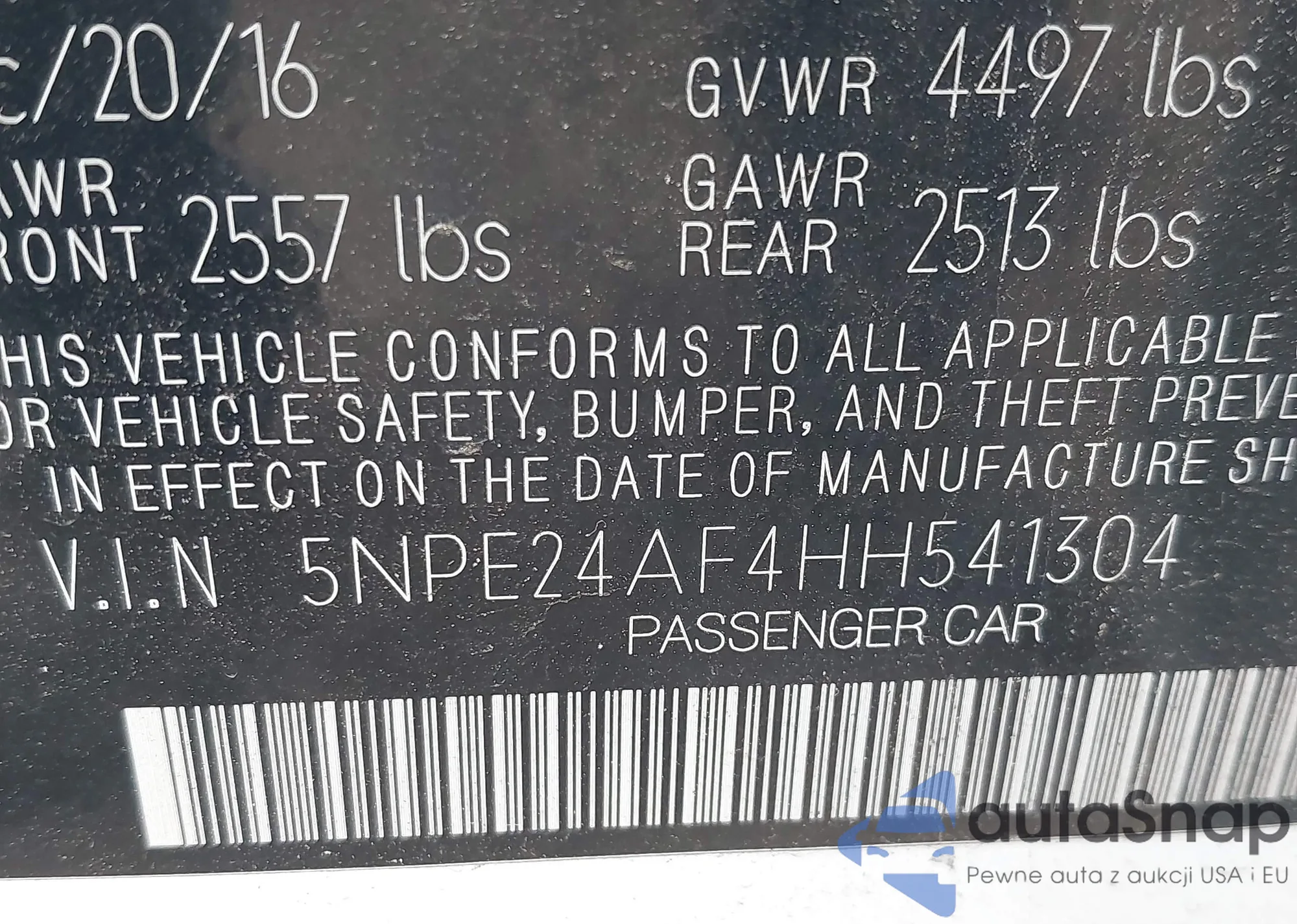 • VIN 5NPE24AF7GH336591