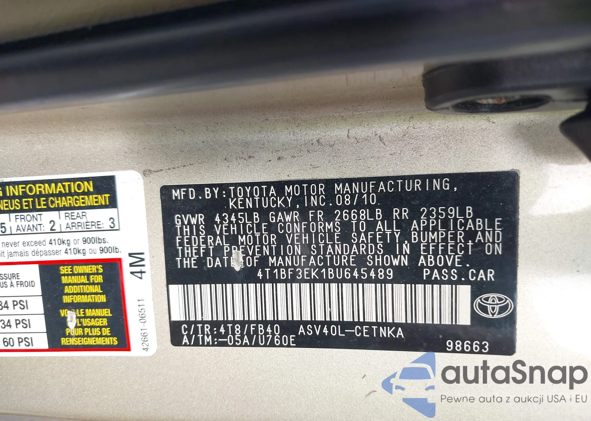 • VIN 1N4BL4DV8PN365803