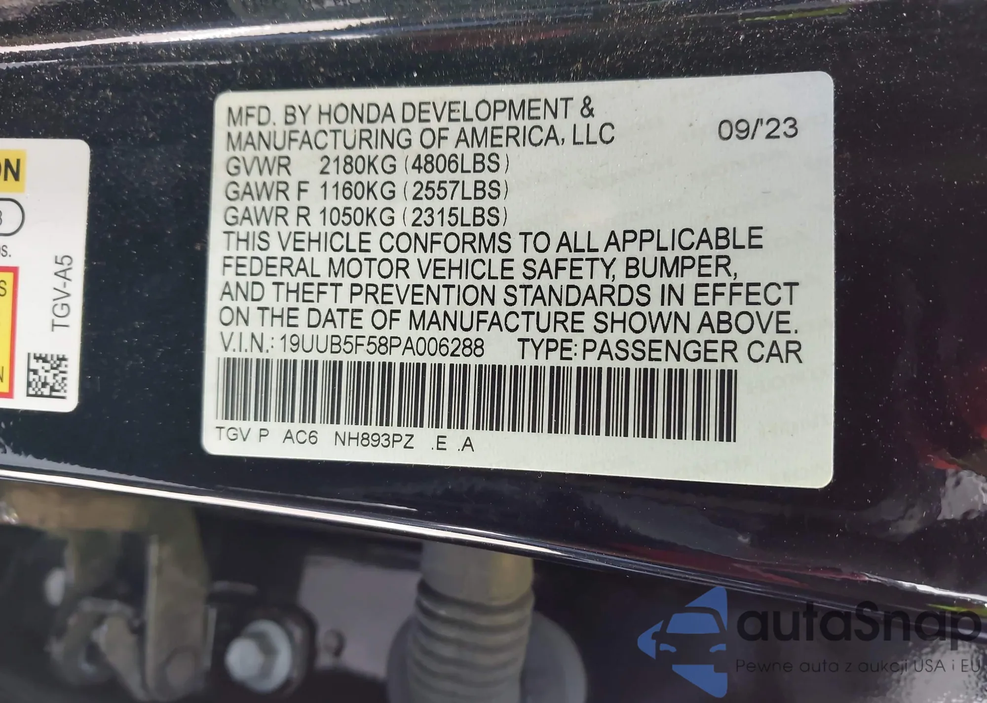 • VIN 19UUB5F58PA006288
