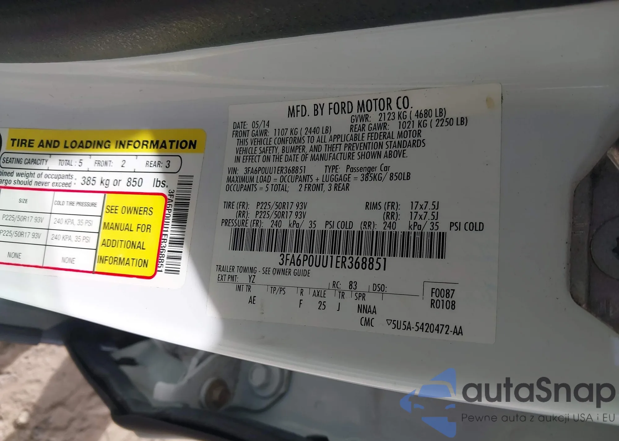 • VIN 3FA6P0UU1ER368851