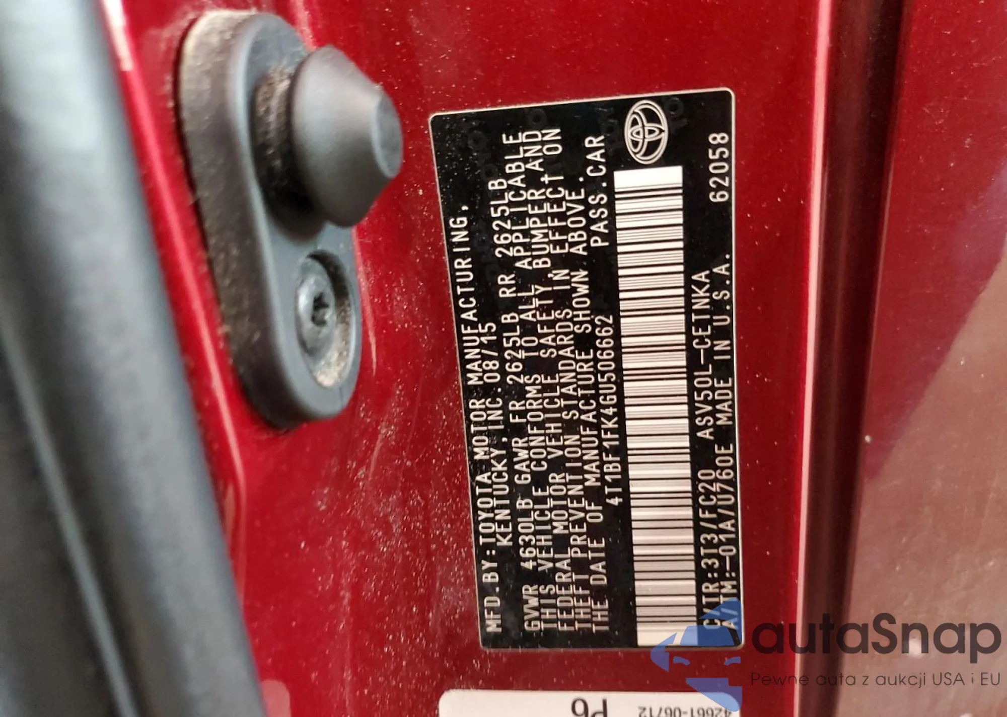 LOT: 81031925 VIN: 4T1BF1FK4GU506662