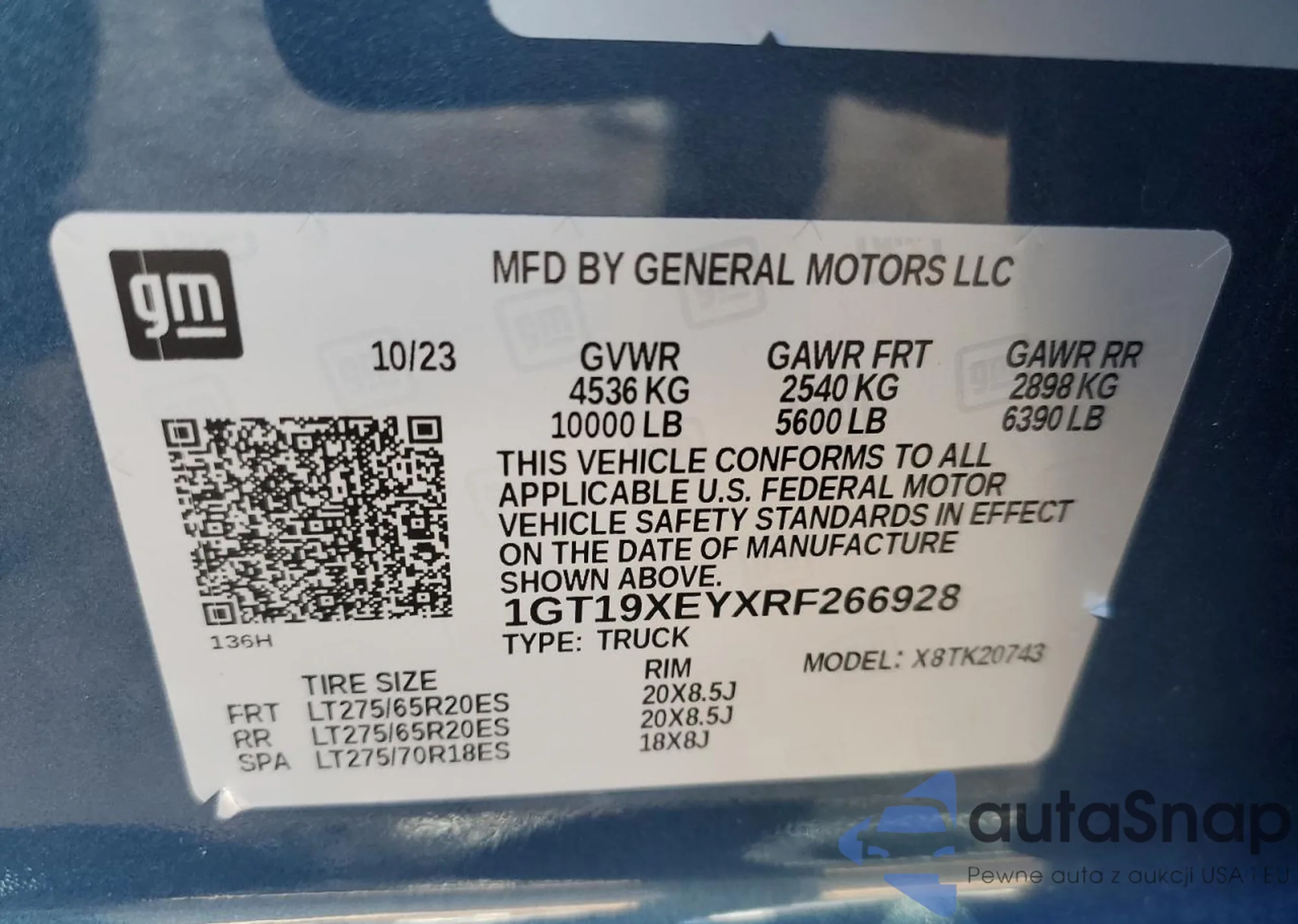• VIN 1GT19XEYXRF266928