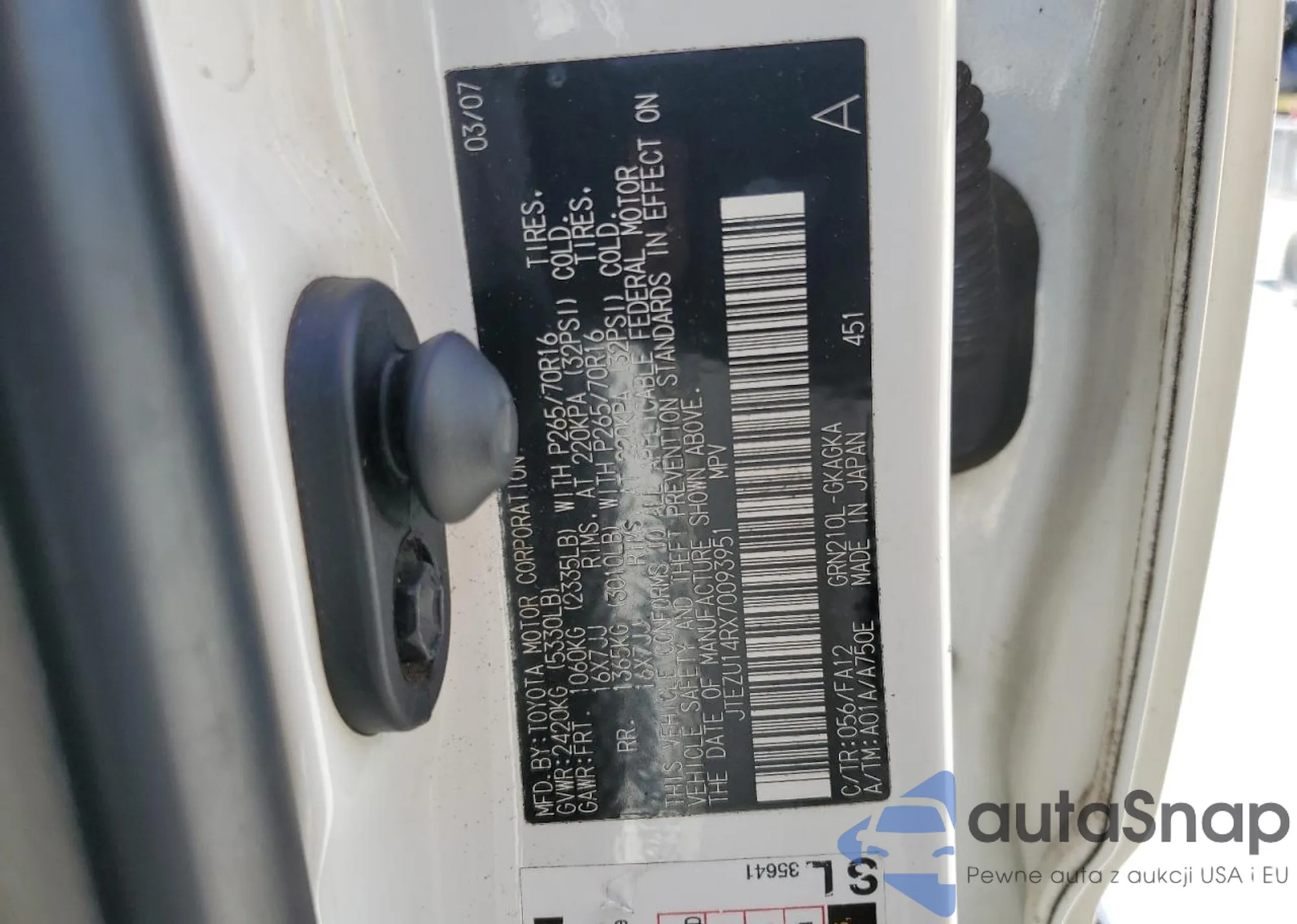 LOT: 51657685 VIN: JTEZU14RX70093951