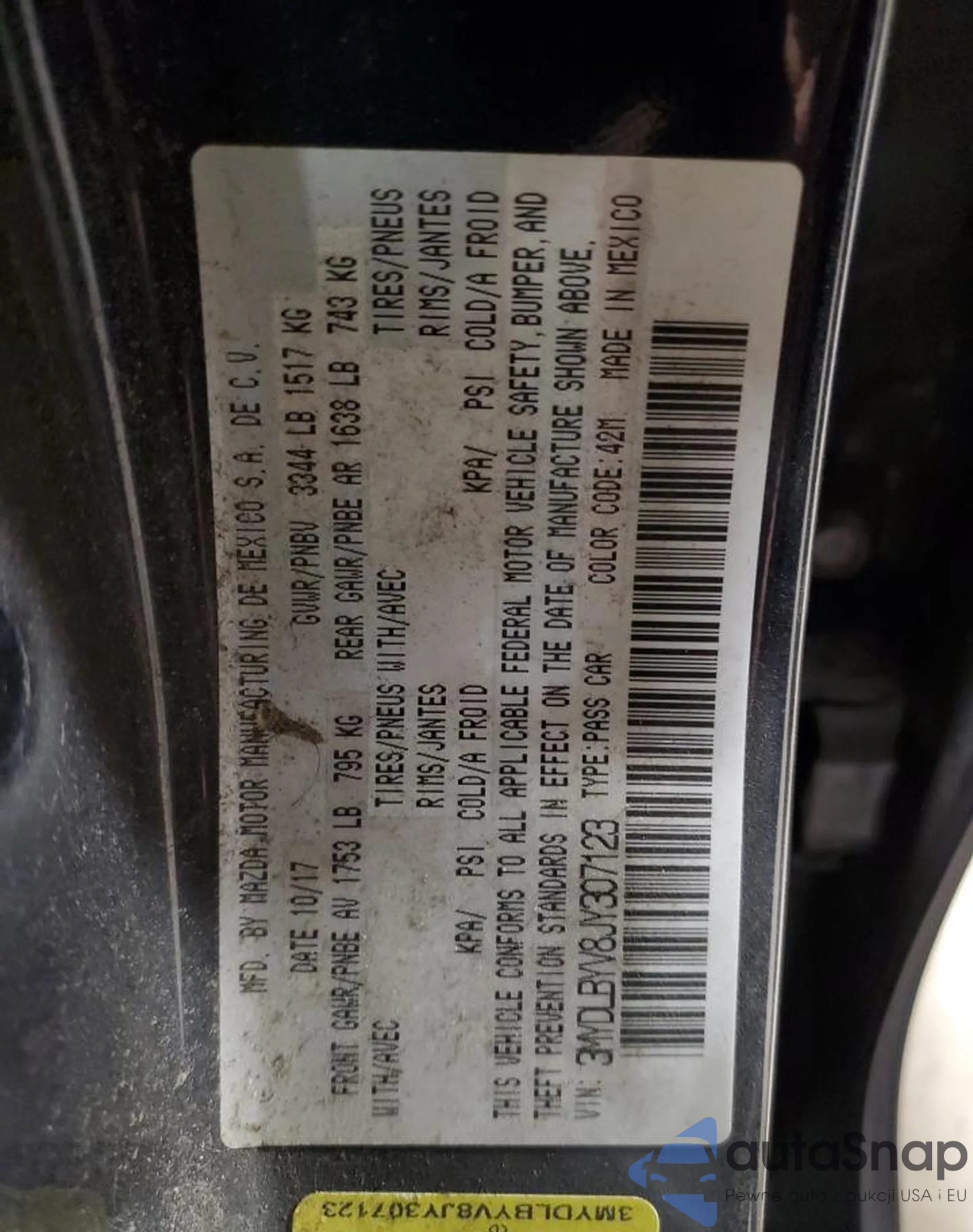 • VIN 3MYDLBYV8JY307123