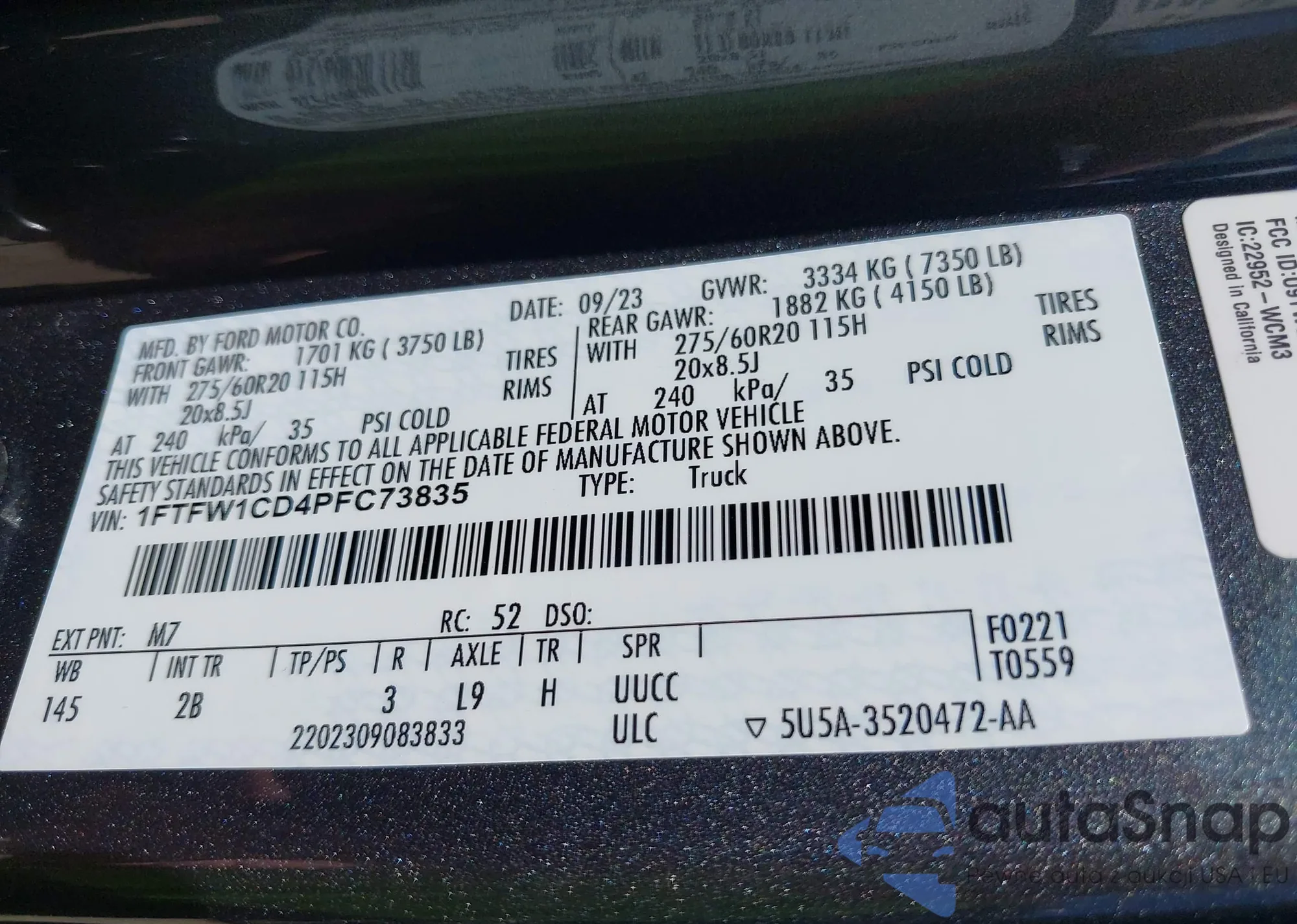 LOT: 43092988 VIN: 1FTFW1CD4PFC73835
