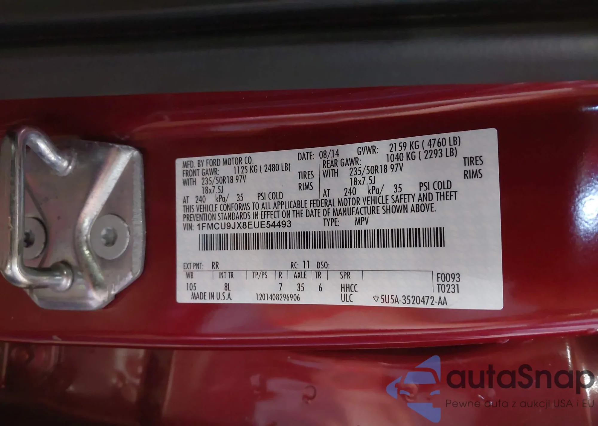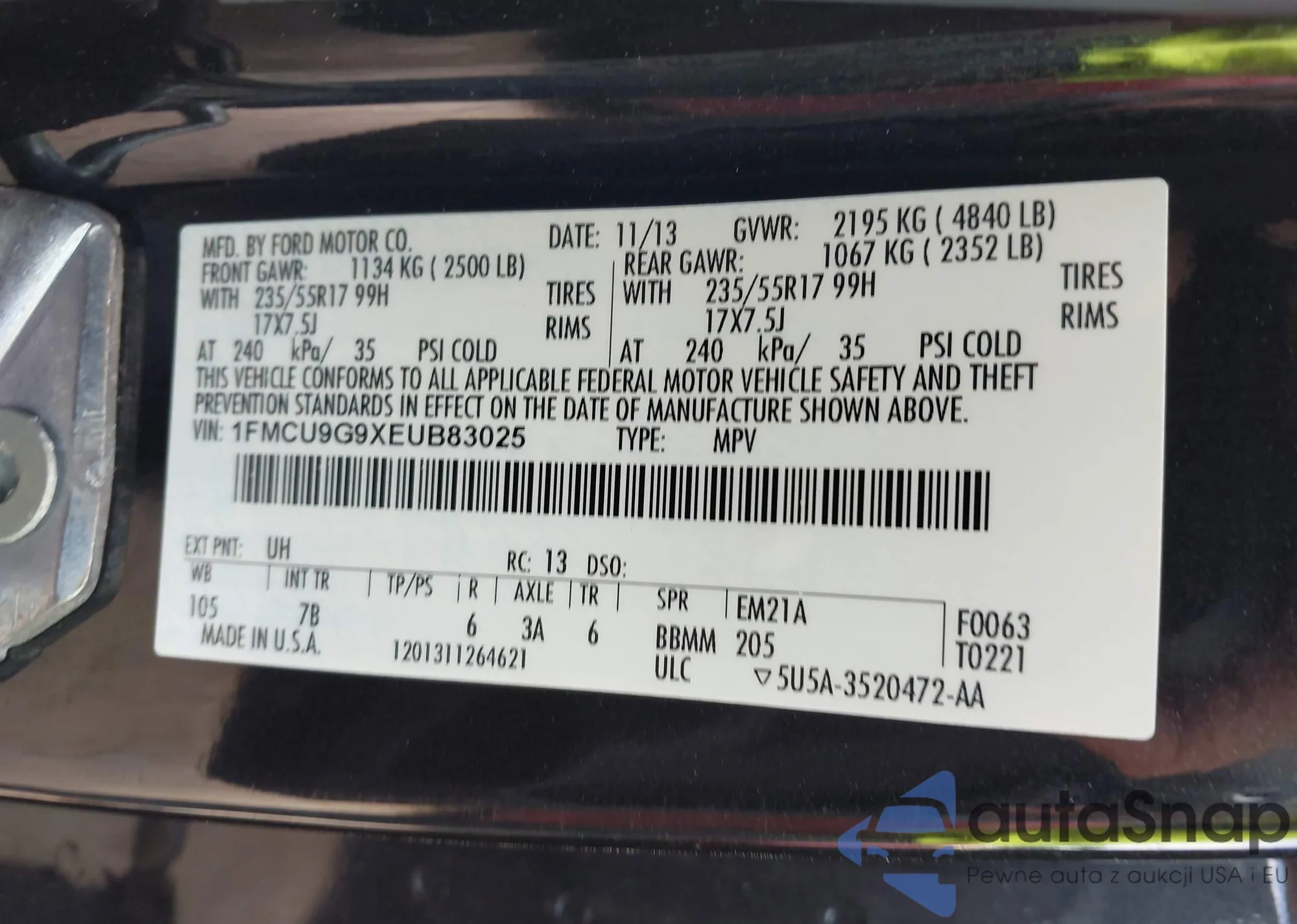 • VIN 1FMCU9G9XEUB83025