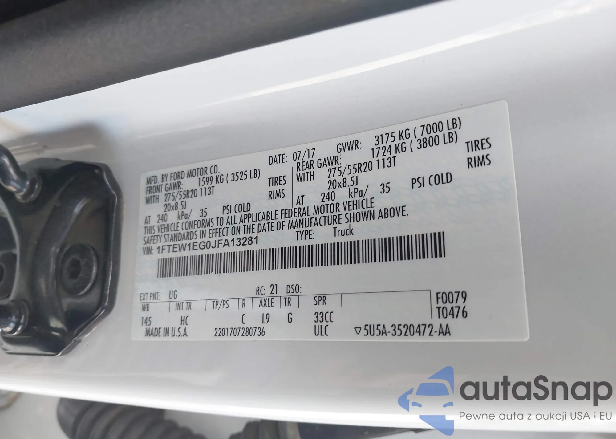 • VIN 1FTEW1EG0JFA13281