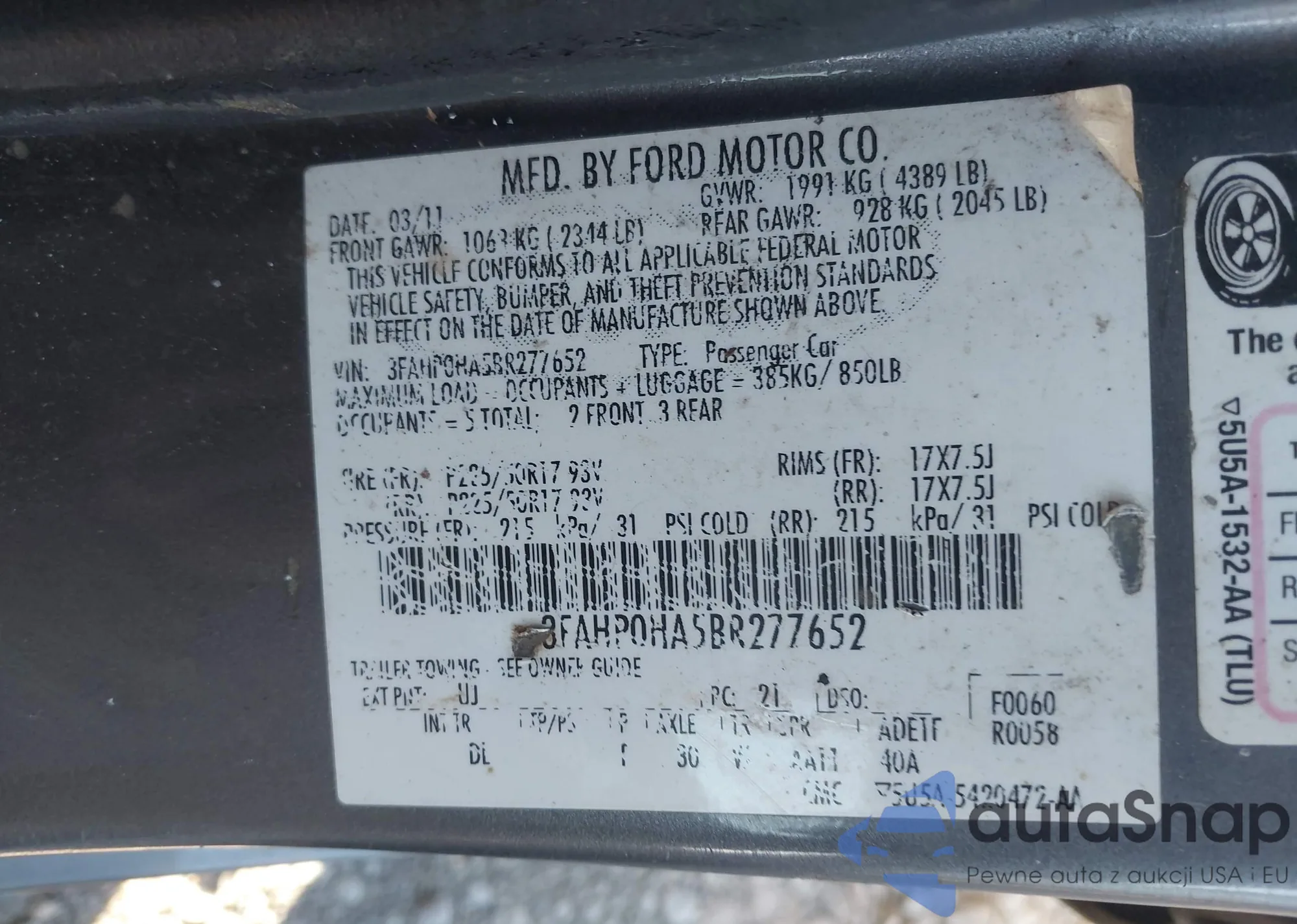 • VIN 3FAHP0HA5BR277652