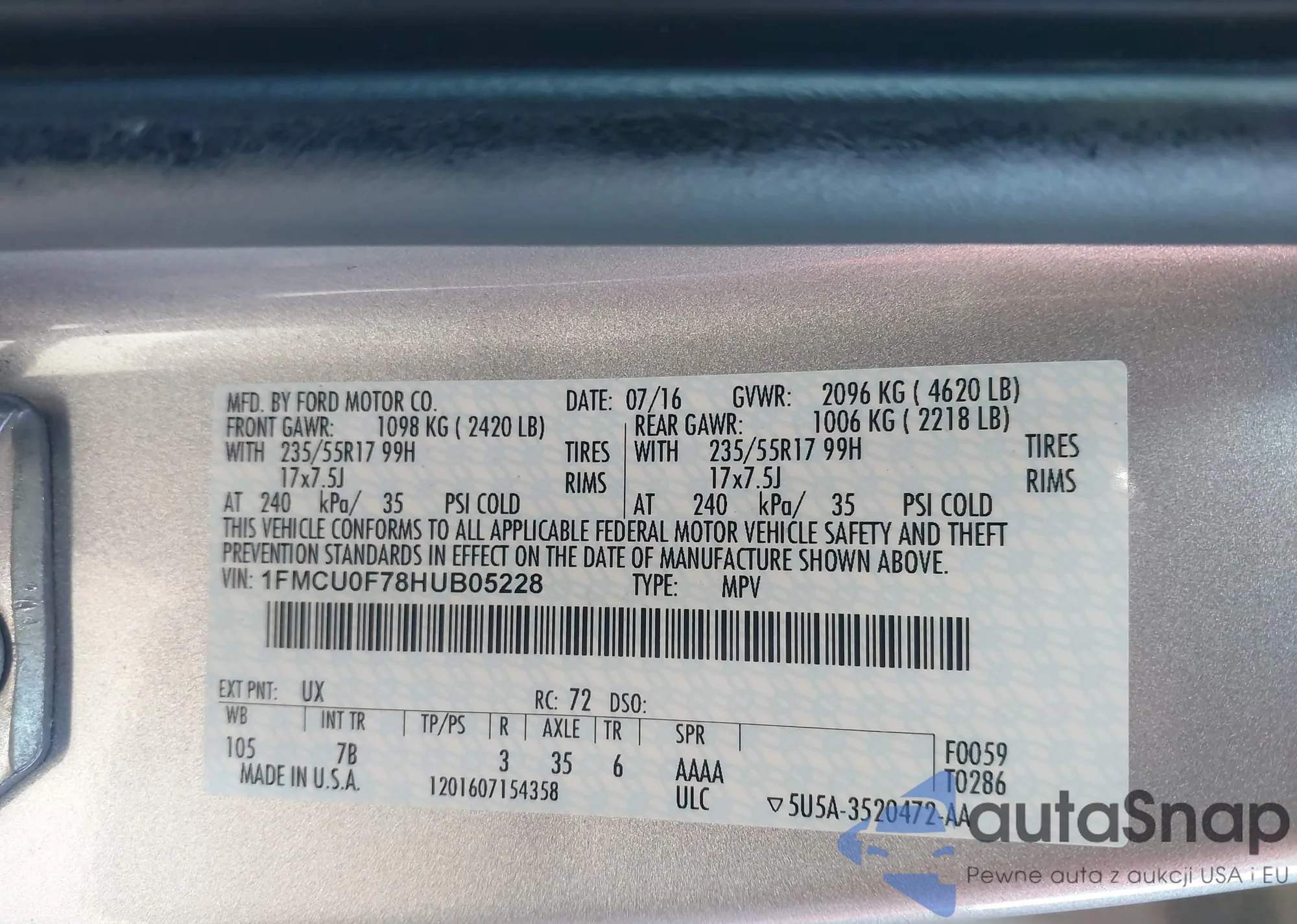 • VIN 1FMCU0F79HUB44586