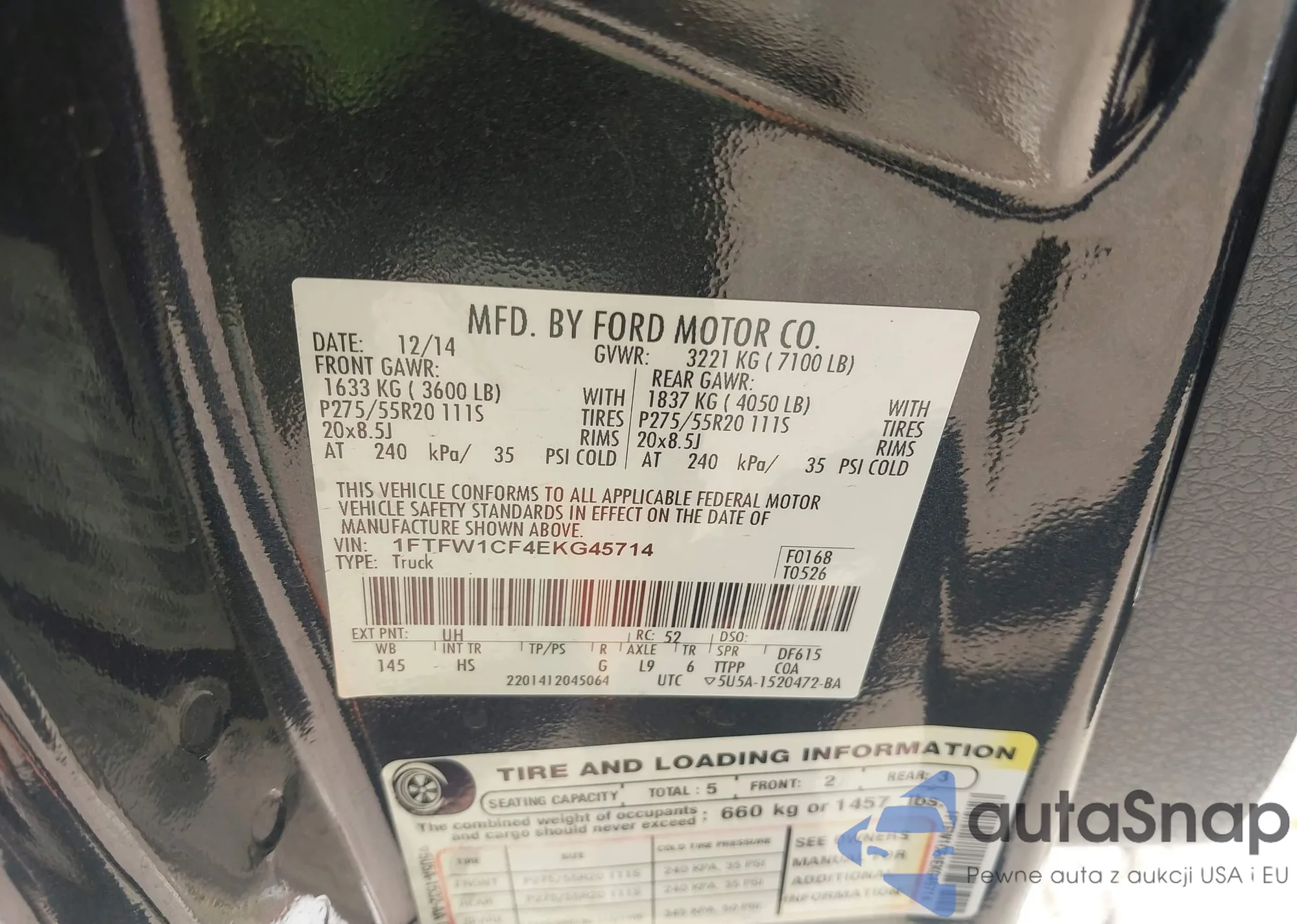LOT: 43290605 VIN: 1FTFW1CF4EKG45714