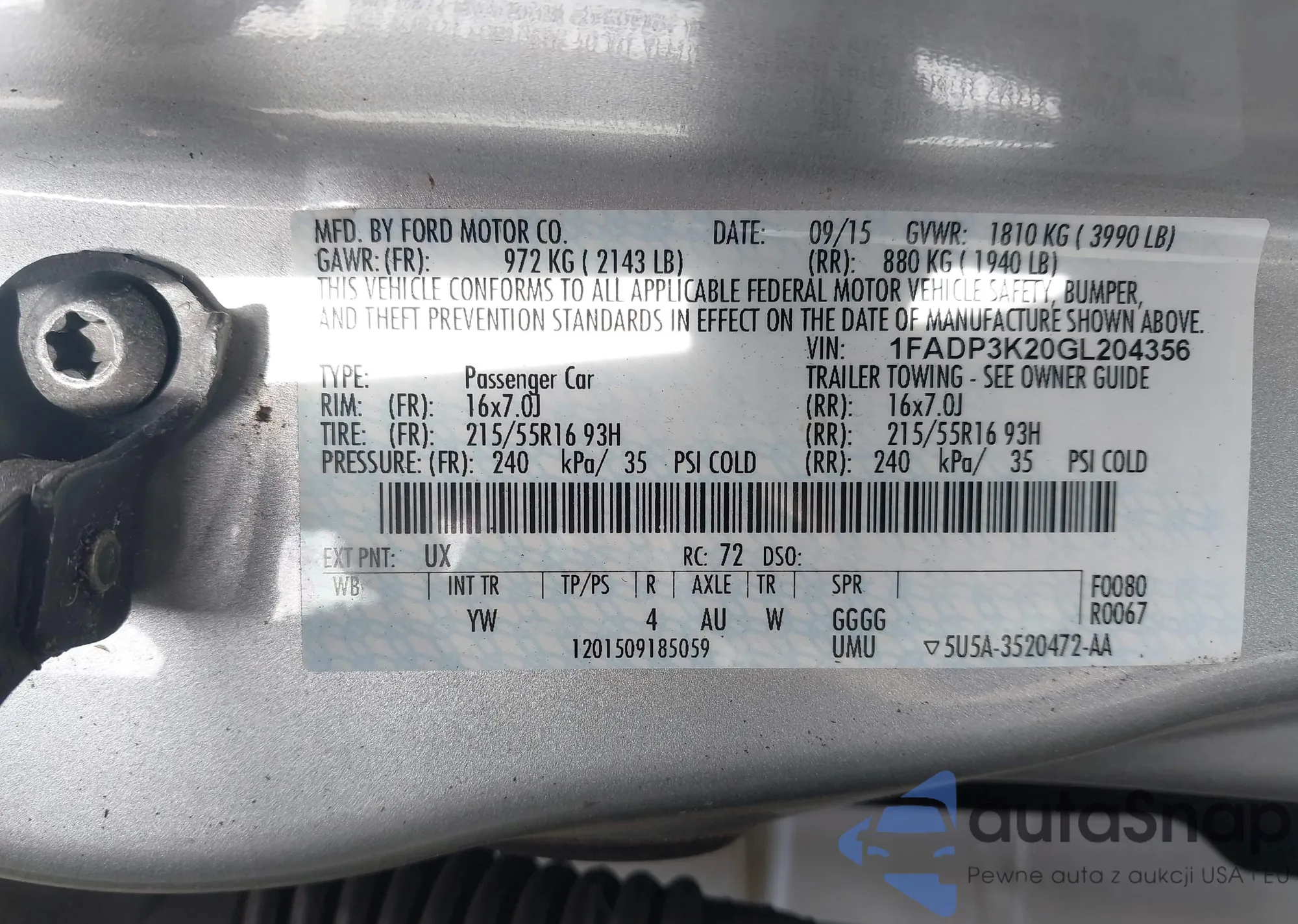 • VIN 3FA6P0LU9JR225965