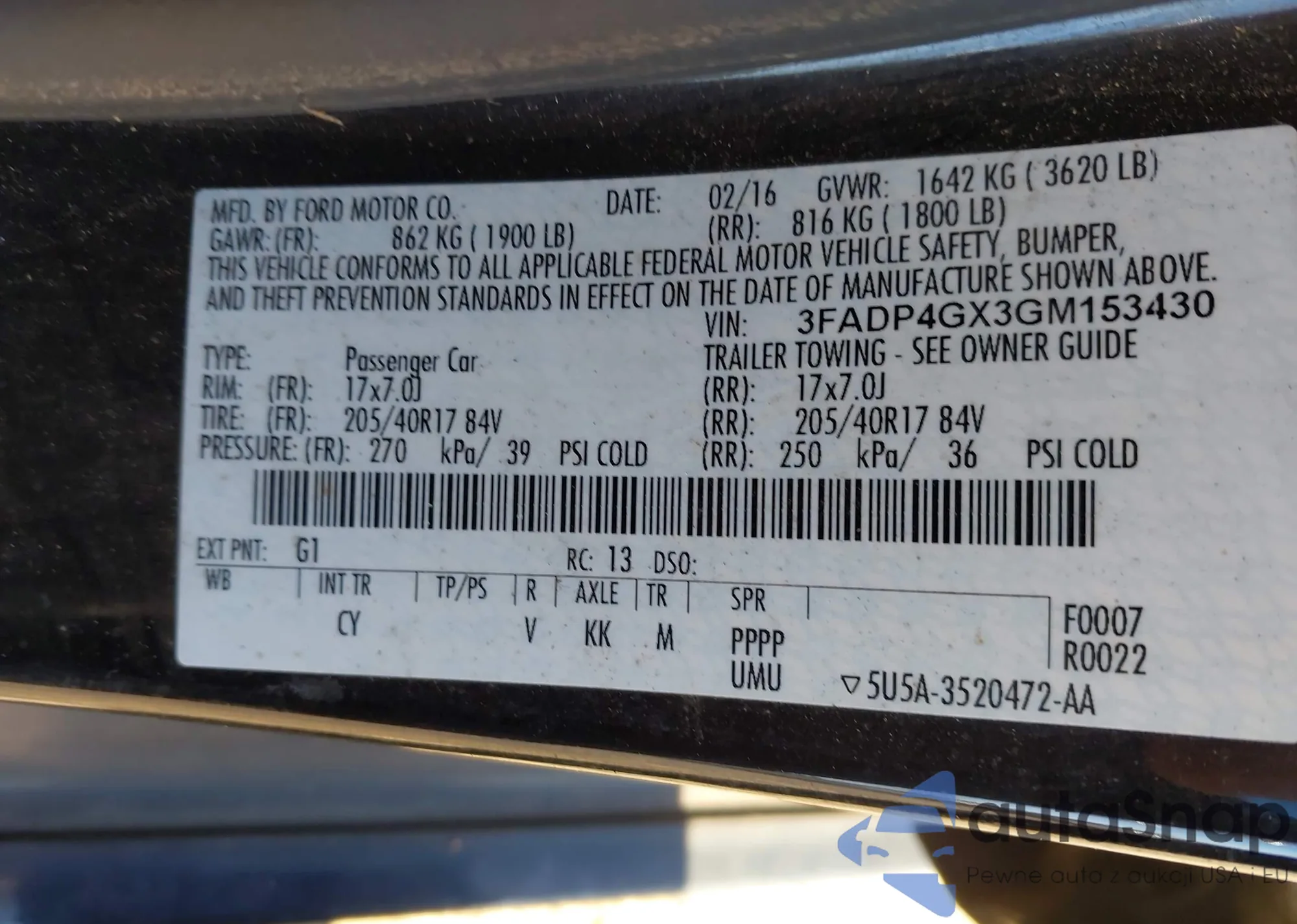 LOT: 42916881 VIN: 1FMCU0G78GUA36442