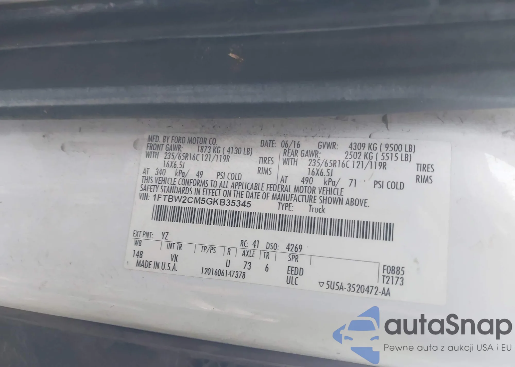 • VIN 1FTBW2CM5GKB35345