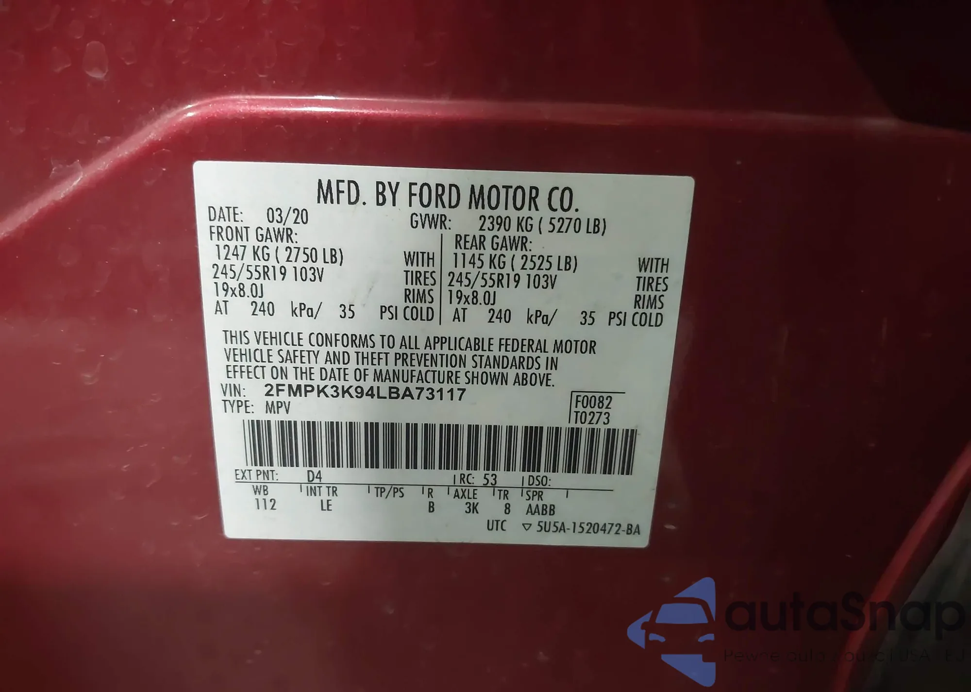 • VIN 2FMPK3K94LBA73117