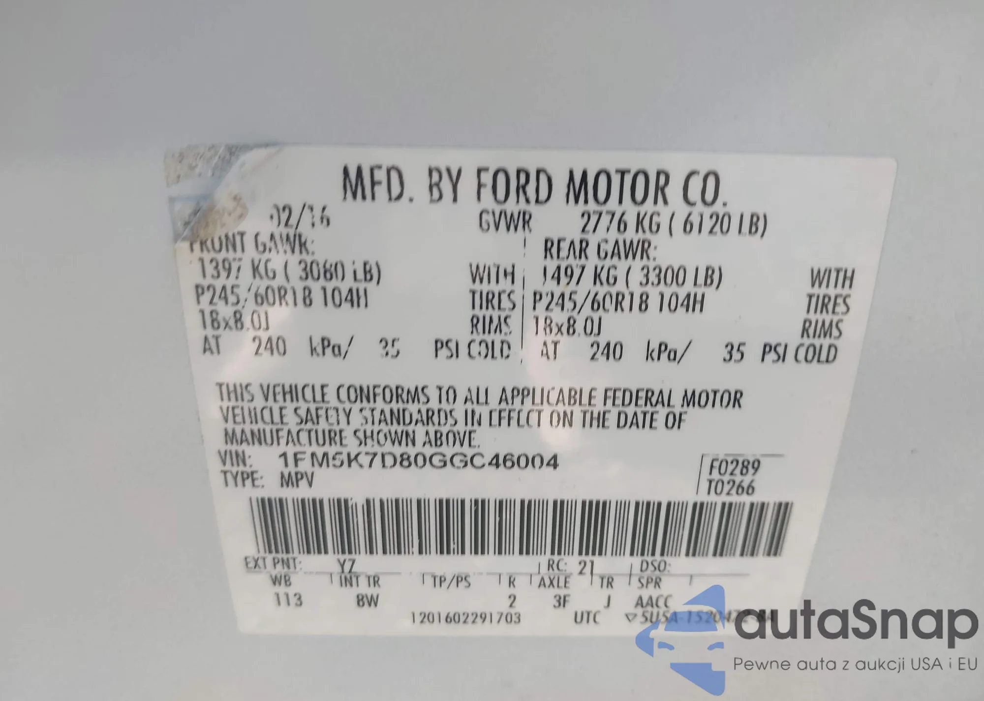 LOT: 43507903 VIN: 4JGFB4KB2MA358867