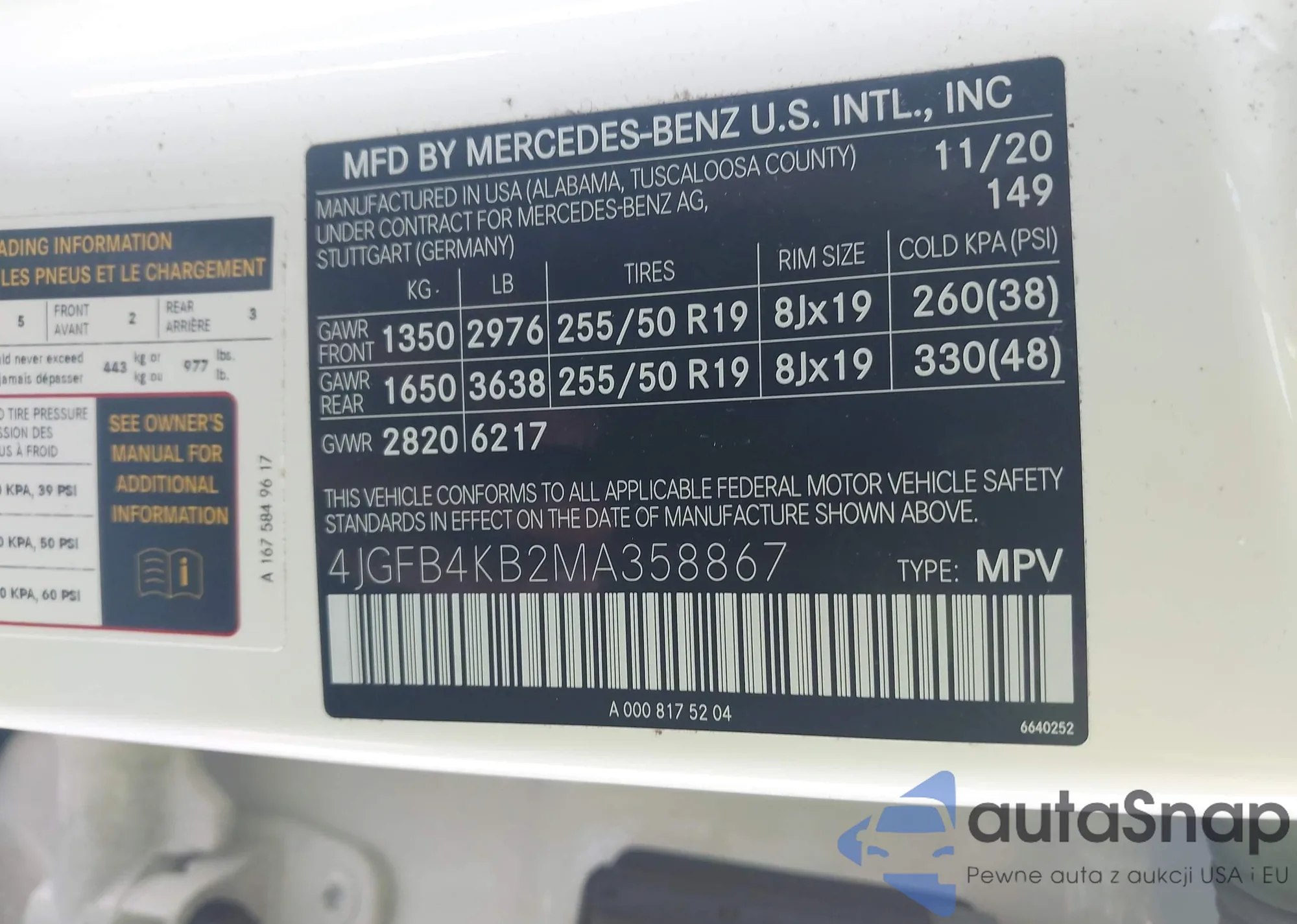 • VIN 4JGFB4KB2MA358867