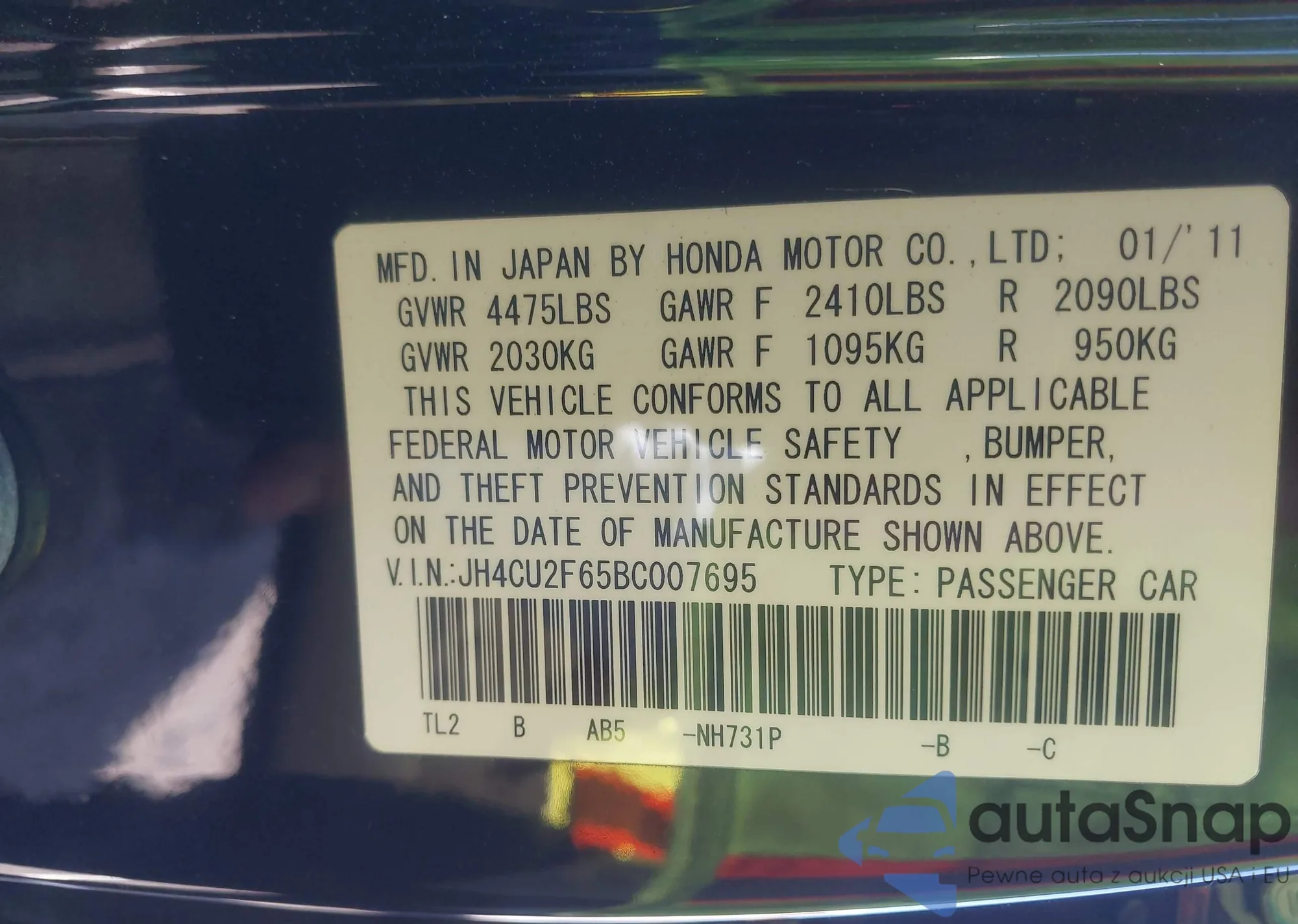 • VIN JH4CU2F65BC007695
